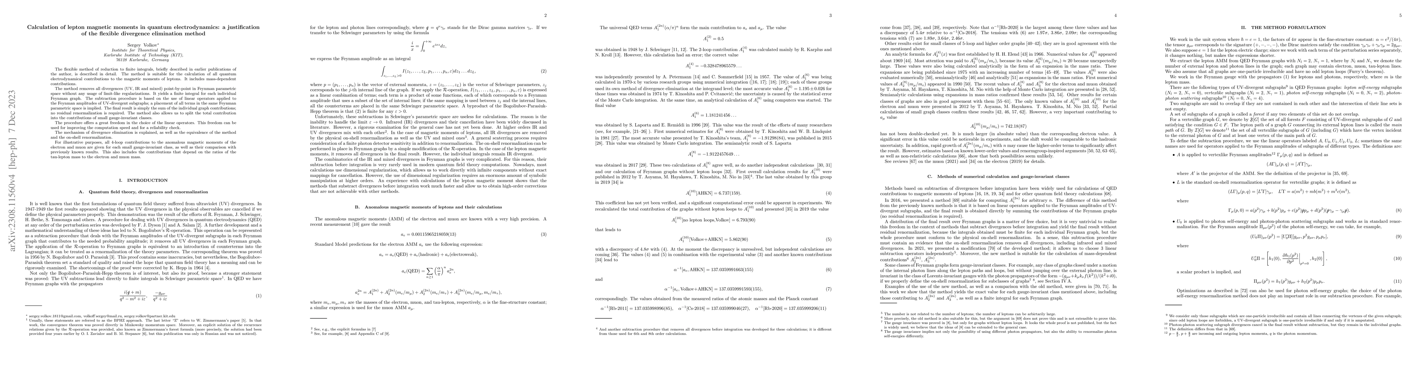 This paper details a flexible method for calculating lepton magnetic moments in quantum electrodynamics, eliminating all divergences without regularization. It provides a finite integral for each Feynman graph and allows for computation speed improvements and reliability checks.