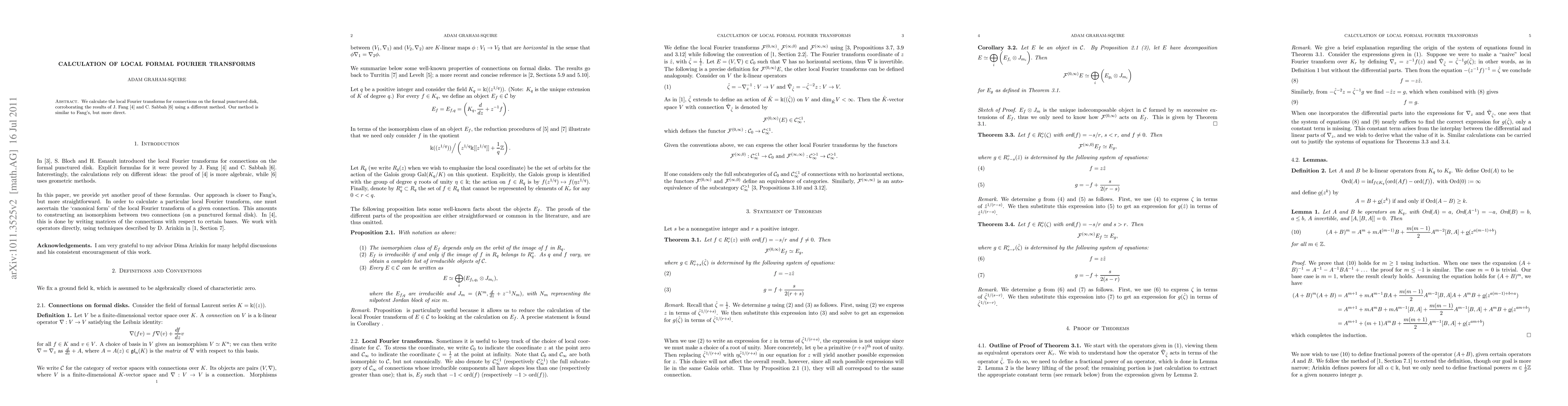 Summary: This paper presents a more direct calculation of local Fourier transforms for connections on the formal punctured disk, validating previous results by Fang and Sabbah through an alternative, simpler method.