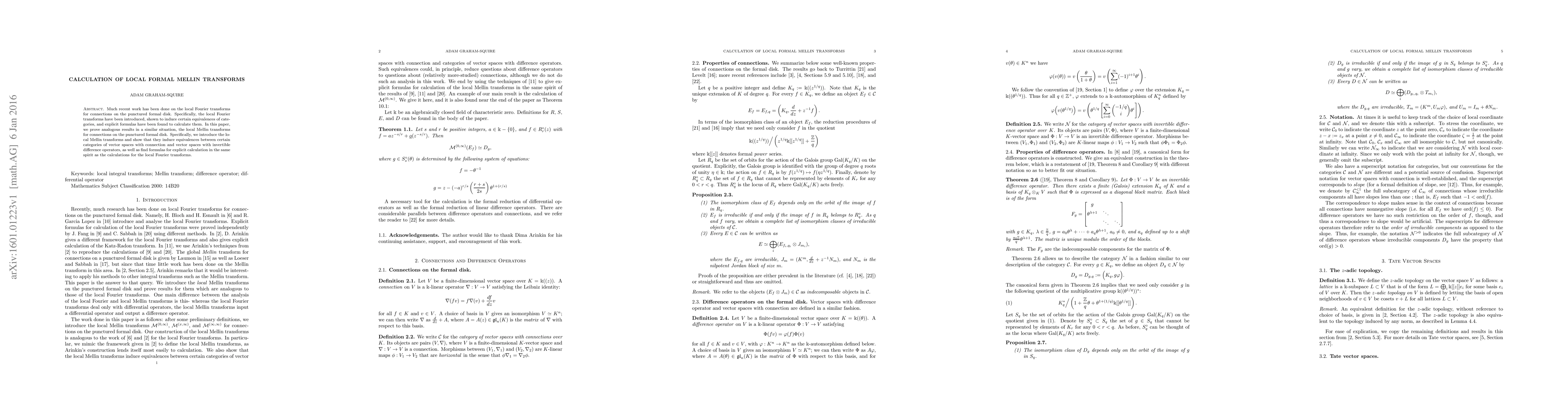 This paper introduces local Mellin transforms for connections on the punctured formal disk, proving they induce equivalences between certain categories and providing explicit calculation formulas, similar to those found for local Fourier transforms.