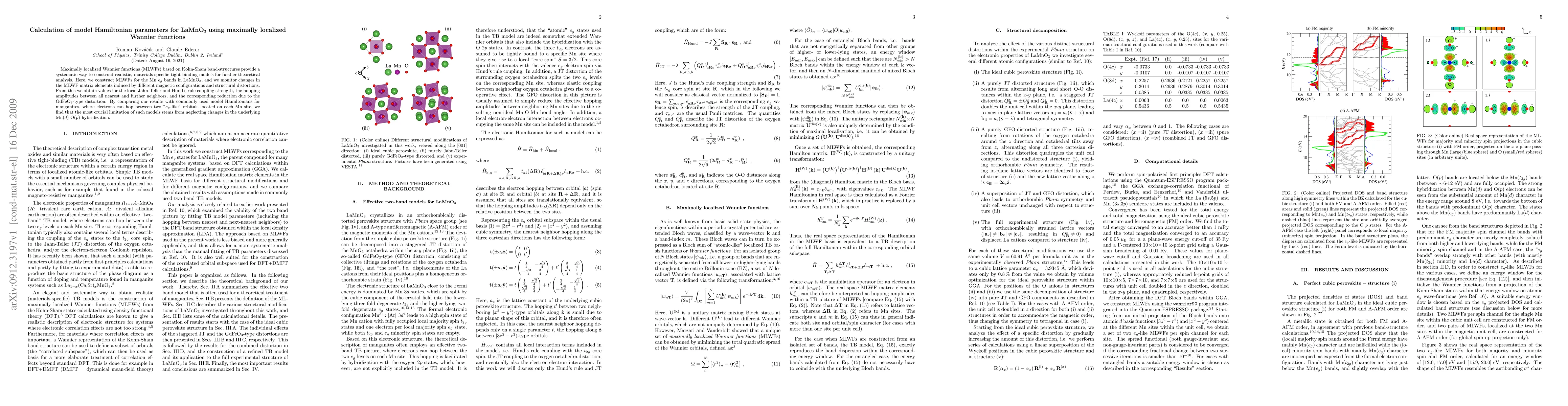 This paper constructs maximally localized Wannier functions for LaMnO_3's Mn e_g bands to derive a detailed model Hamiltonian. It reveals significant limitations in existing manganite models by highlighting the importance of Mn(d)-O(p) hybridization changes.