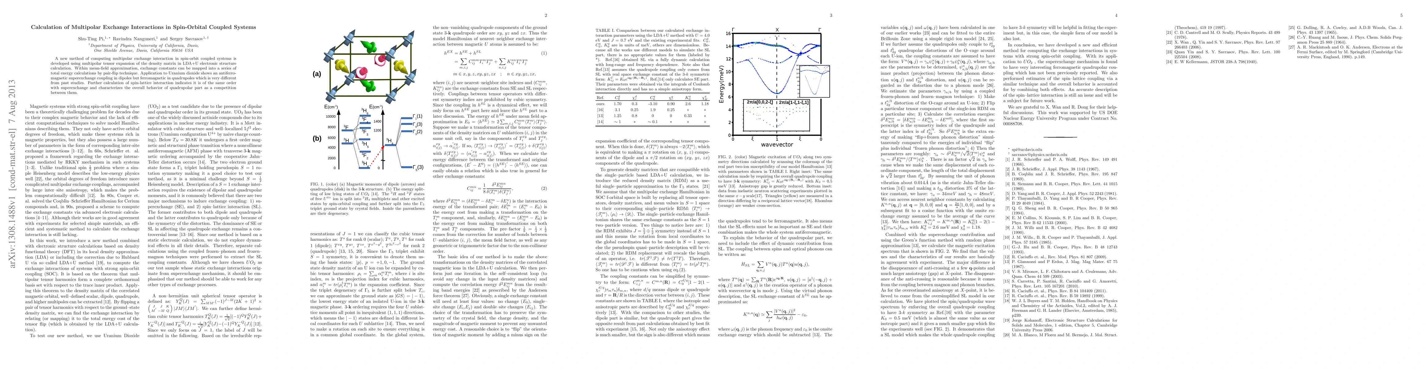 A new method of computing multipolar exchange interaction in spin-orbit coupled systems is developed using multipolar tensor expansion of the density matrix in LDA+U electronic structure calculation. Within mean-field approximation, exchange constants can be mapped into a series of total energy calculations by pair-flip technique. Application to Uranium dioxide shows an antiferromagnetic superexchange coupling in dipoles but ferromagnetic in quadrupoles which is very different from past studies. Further calculation of spin-lattice interaction indicates it is of the same order with superexchange and characterizes the overall behavior of quadrupolar part as a competition between them.