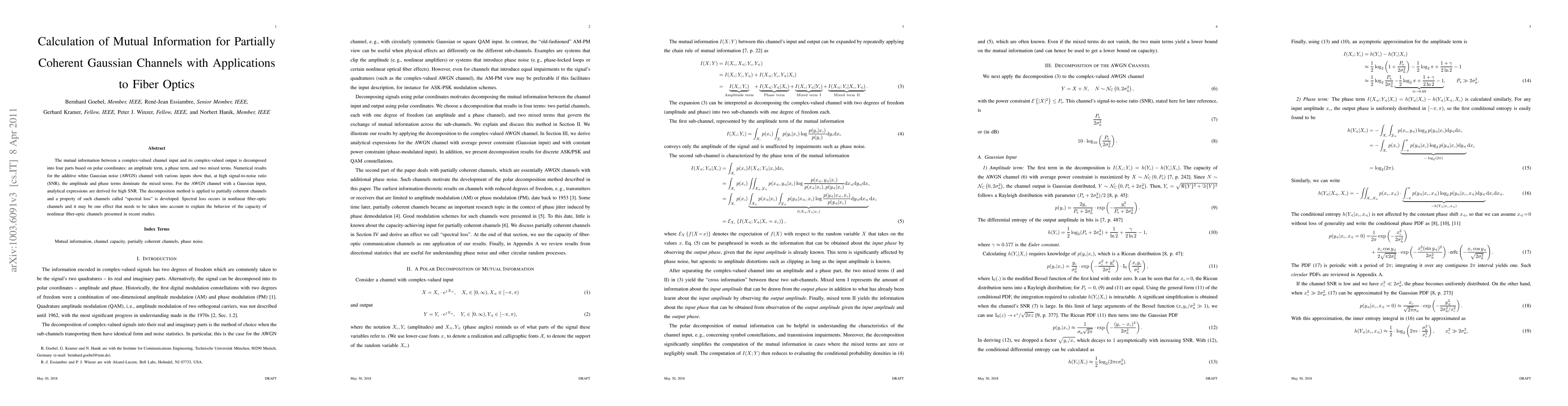 This paper decomposes mutual information in partially coherent Gaussian channels into amplitude, phase, and mixed terms, showing that amplitude and phase dominate at high SNR. It introduces "spectral loss" in fiber optics, potentially explaining capacity behavior in nonlinear channels.