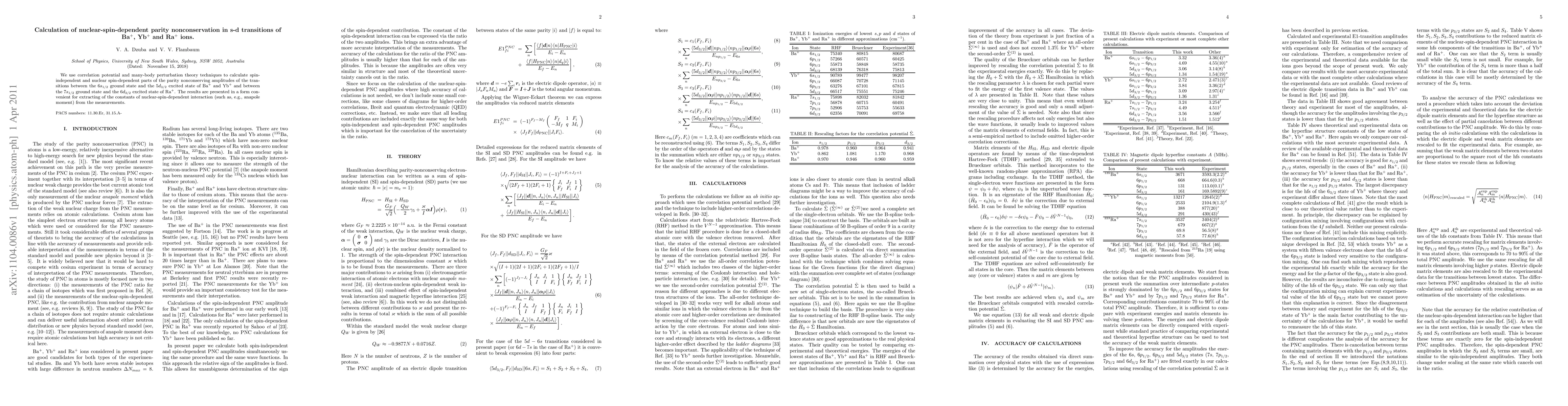 This paper calculates nuclear-spin-dependent parity nonconservation in s-d transitions for Ba$^+$, Yb$^+$, and Ra$^+$ ions using correlation potential and many-body perturbation theory. The results provide constants for nuclear-spin-dependent interactions, useful for experimental measurements.