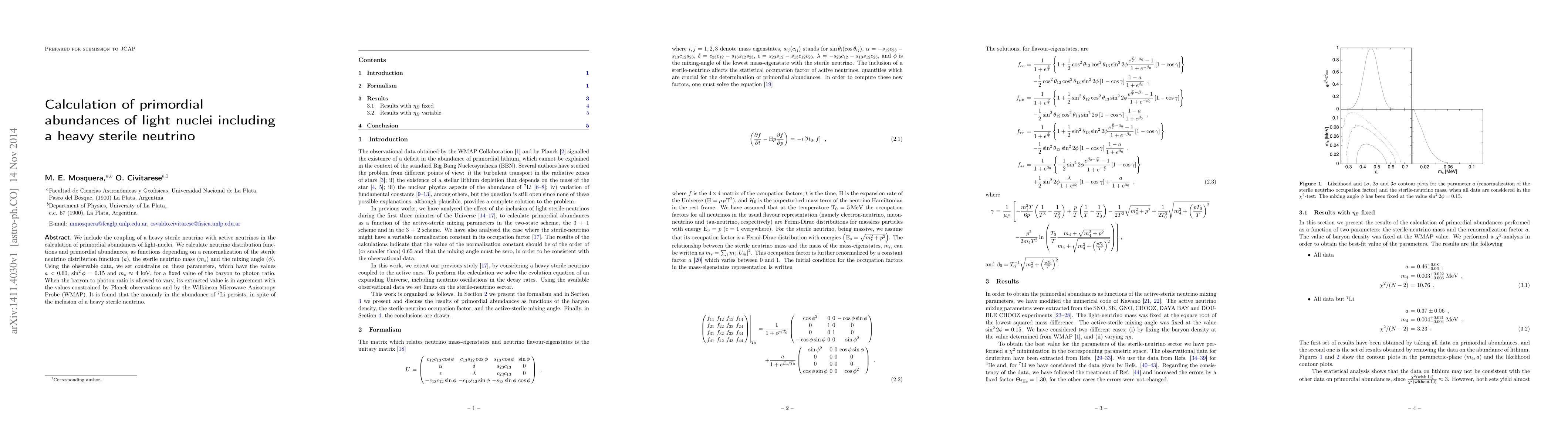 We include the coupling of a heavy sterile neutrino with active neutrinos in the calculation of primordial abundances of light-nuclei. We calculate neutrino distribution functions and primordial abundances, as functions depending on a renormalization of the sterile neutrino distribution function $(a)$, the sterile neutrino mass $(m_s)$ and the mixing angle $(\phi)$. Using the observable data, we set constrains on these parameters, which have the values $a < 0.60$, $\sin^2 \phi=0.15$ and $m_s \approx 4$ keV, for a fixed value of the baryon to photon ratio. When the baryon to photon ratio is allowed to vary, its extracted value is in agreement with the values constrained by Planck observations and by the Wilkinson Microwave Anisotropy Probe (WMAP). It is found that the anomaly in the abundance of $^7$Li persists, in spite of the inclusion of a heavy sterile neutrino.