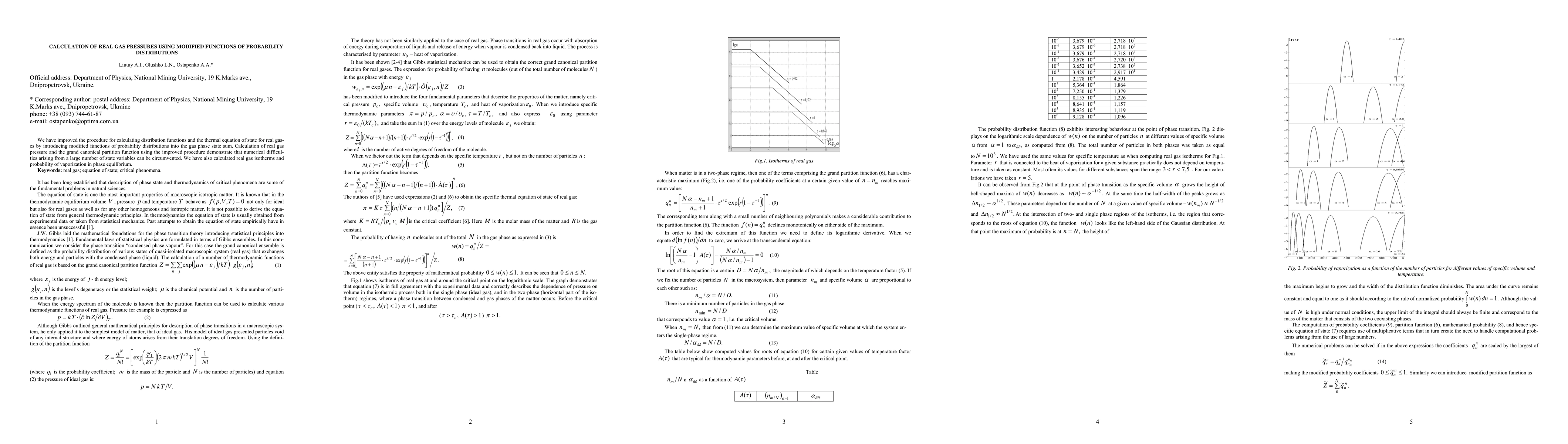 We have improved the procedure for calculating distribution functions and the thermal equation of state for real gases by introducing modified functions of probability distributions into the gas phase state sum. Calculation of real gas pressure and the grand canonical partition function using the improved procedure demonstrate that numerical difficulties arising from a large number of state variables can be circumvented. We have also calculated real gas isotherms and probability of vaporization in phase equilibrium.