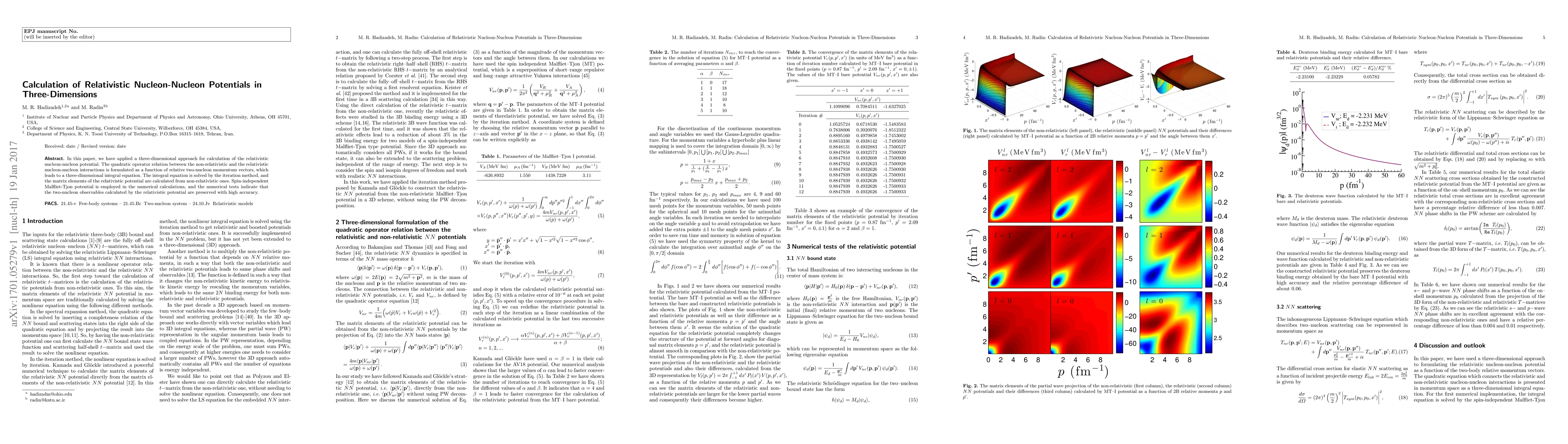 This paper develops a three-dimensional method to calculate relativistic nucleon-nucleon potentials, utilizing a quadratic operator relation between non-relativistic and relativistic interactions. The resulting three-dimensional integral equation is solved iteratively, yielding high-accuracy results for two-nucleon observables.