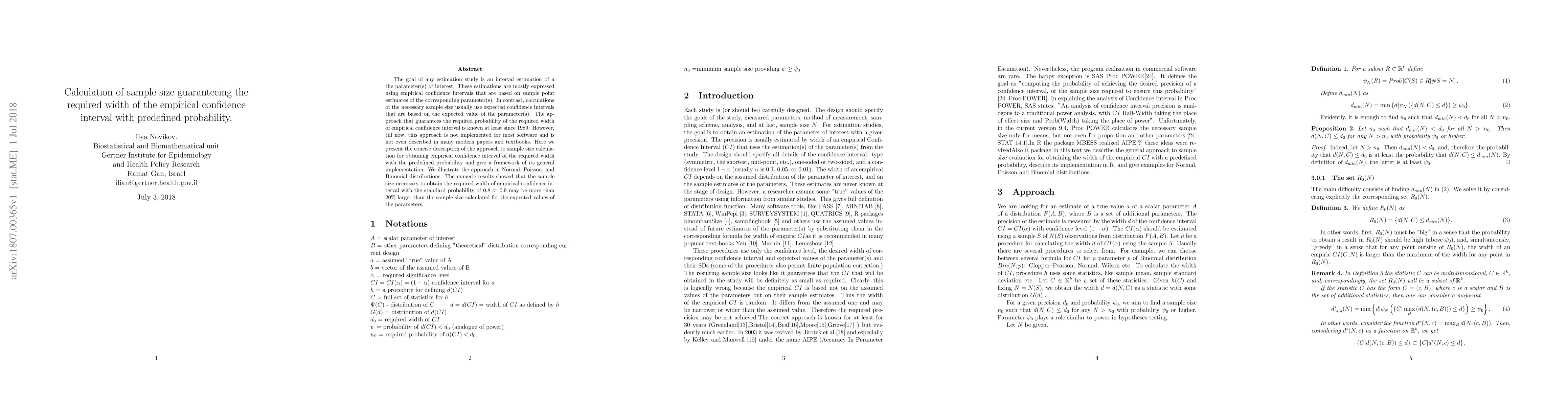 The study presents a method to calculate sample size for empirical confidence intervals with a predefined probability, finding that this approach can result in larger required sample sizes than expected value-based calculations.