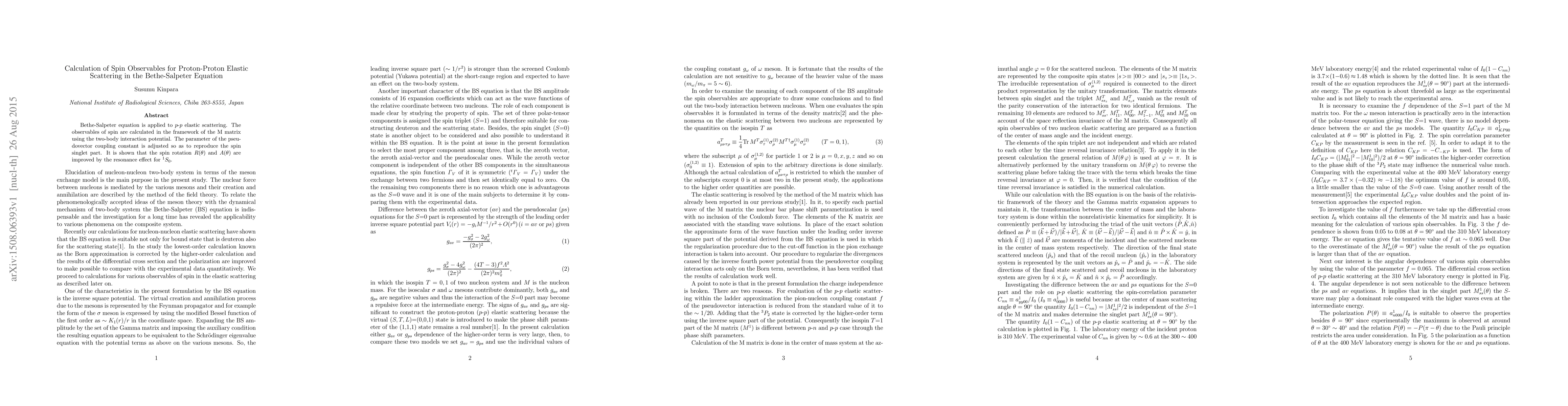 Bethe-Salpeter equation is applied to $p$-$p$ elastic scattering. The observables of spin are calculated in the framework of the M matrix using the two-body interaction potential. The parameter of the pseudovector coupling constant is adjusted so as to reproduce the spin singlet part. It is shown that the spin rotation $R(\theta)$ and $A(\theta)$ are improved by the resonance effect for ${}^{\rm 1}S_{\rm 0}$.