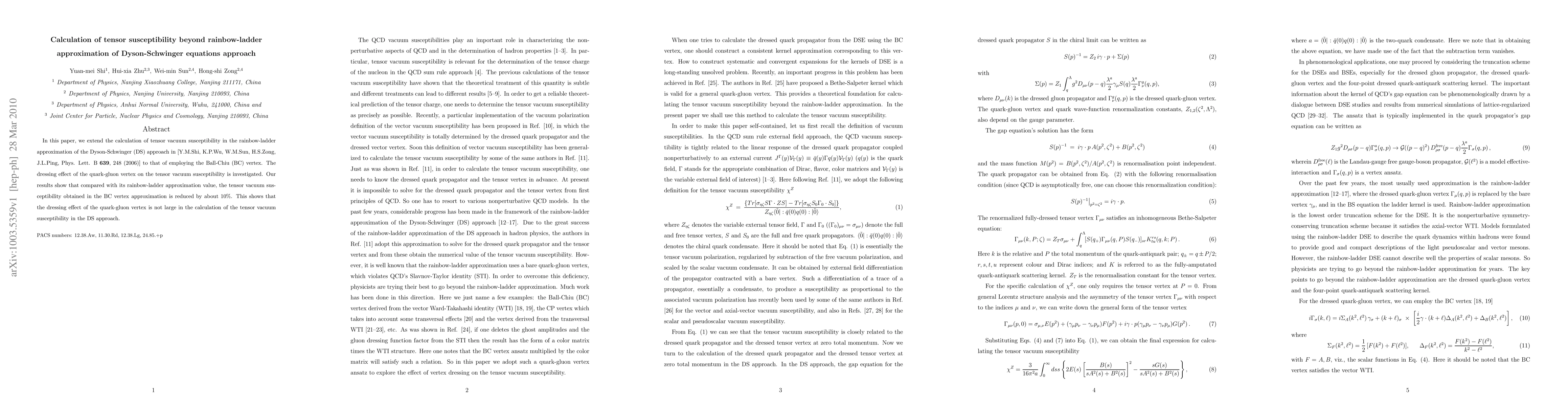 This paper extends the Dyson-Schwinger equation analysis of tensor vacuum susceptibility beyond the rainbow-ladder approximation by using the Ball-Chiu vertex. The results indicate a 10% reduction in tensor vacuum susceptibility compared to the rainbow-ladder approximation, suggesting the quark-gluon vertex's dressing effect is not significant in this context.