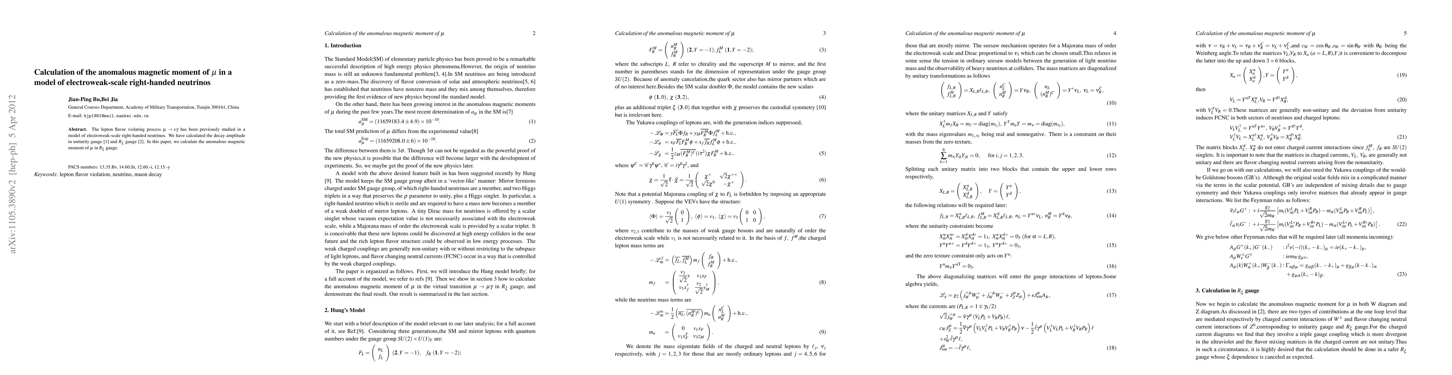 This paper calculates the anomalous magnetic moment of the muon in a model featuring electroweak-scale right-handed neutrinos, extending previous studies on the lepton flavor violating process μ → eγ. The calculations are performed in both unitarity gauge and Rξ gauge.