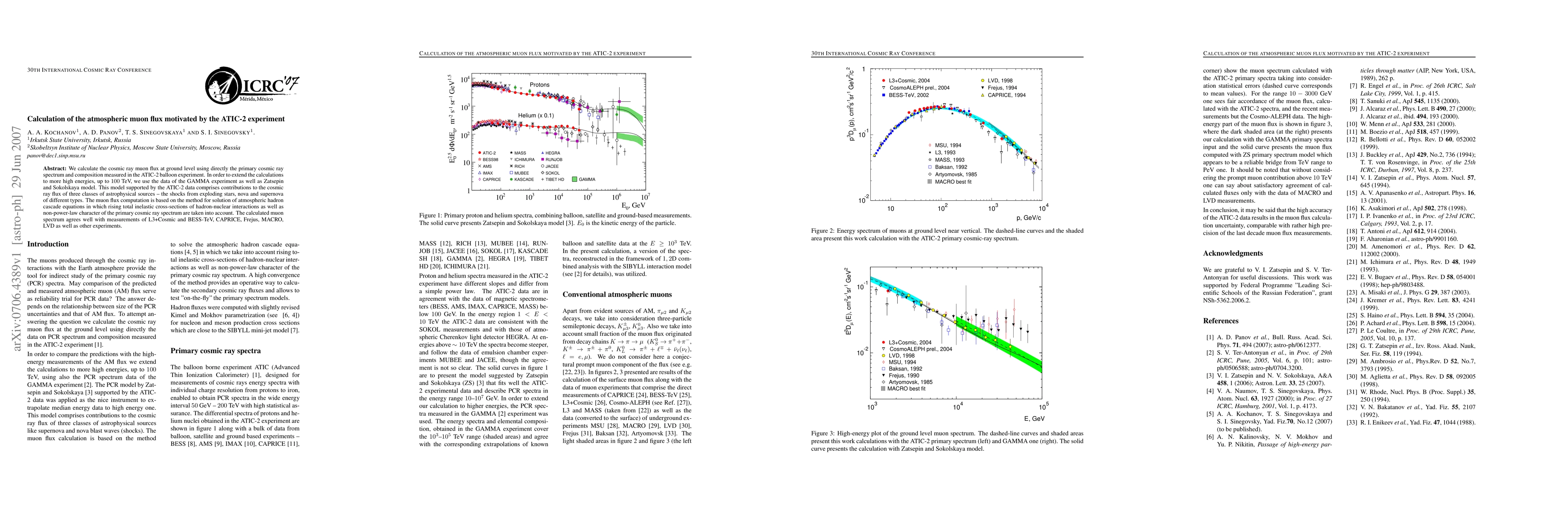 This paper calculates the atmospheric muon flux at ground level using the ATIC-2 experiment's primary cosmic ray spectrum and composition, extending the analysis to high energies up to 100 TeV with the GAMMA experiment data and the Zatsepin and Sokolskaya model. The results align well with various experimental measurements.