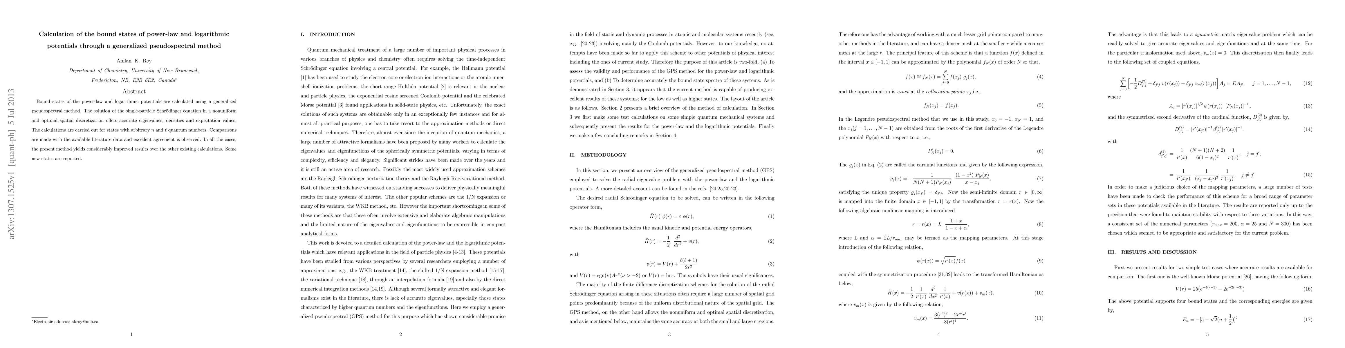 This research introduces a generalized pseudospectral method to calculate bound states of power-law and logarithmic potentials, providing accurate eigenvalues, densities, and expectation values. The method outperforms existing calculations, reports new states, and aligns well with literature data.