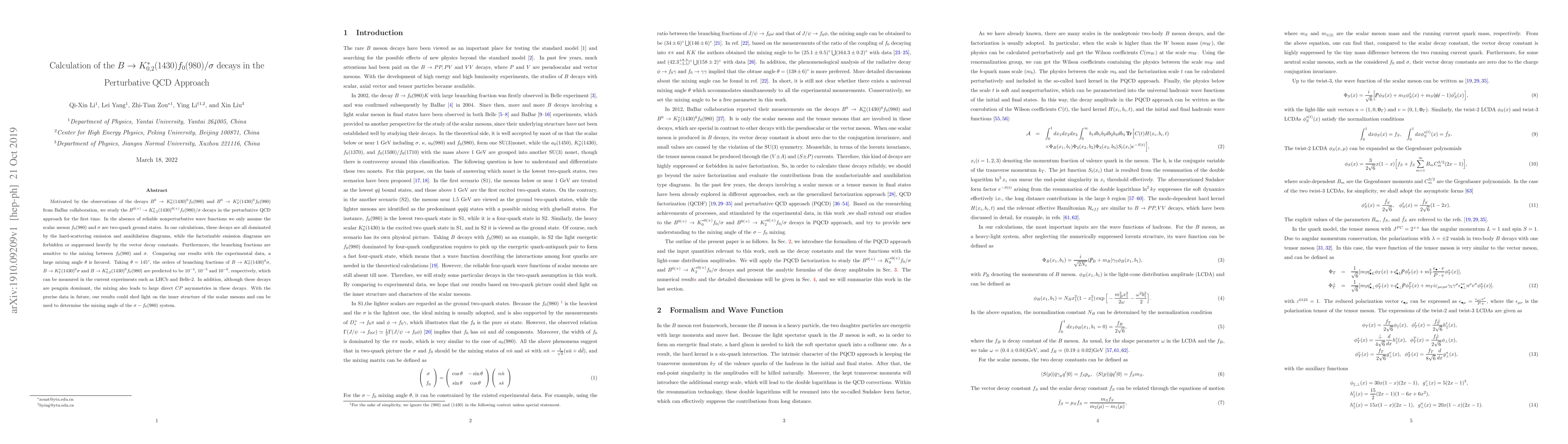 Researchers studied $B$ decays into $K^*$ and $f_0(980)$ mesons using perturbative QCD, predicting large branching fractions and direct CP asymmetries that could shed light on the inner structure of scalar mesons.