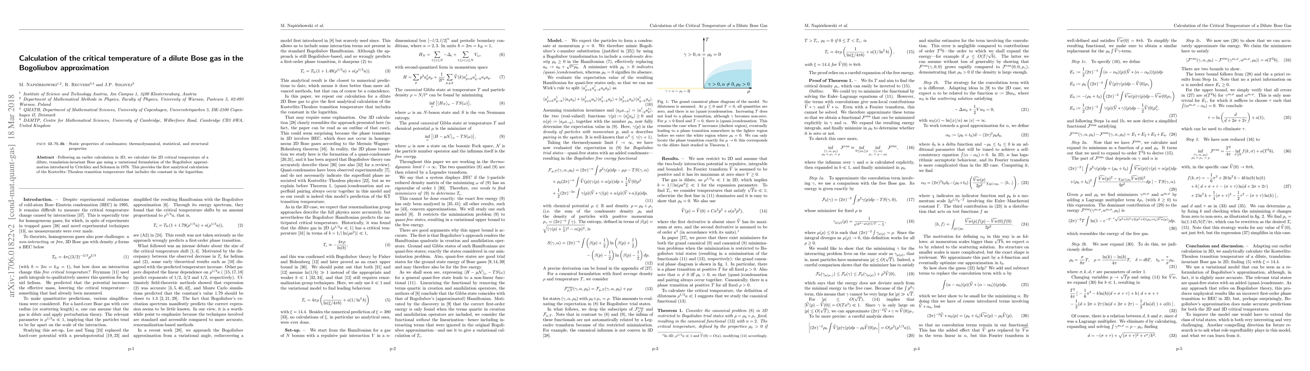 This paper calculates the 2D critical temperature for a dilute Bose gas using the Bogoliubov approximation, providing the first analytical determination of the Kosterlitz-Thouless transition temperature with a logarithmic constant.