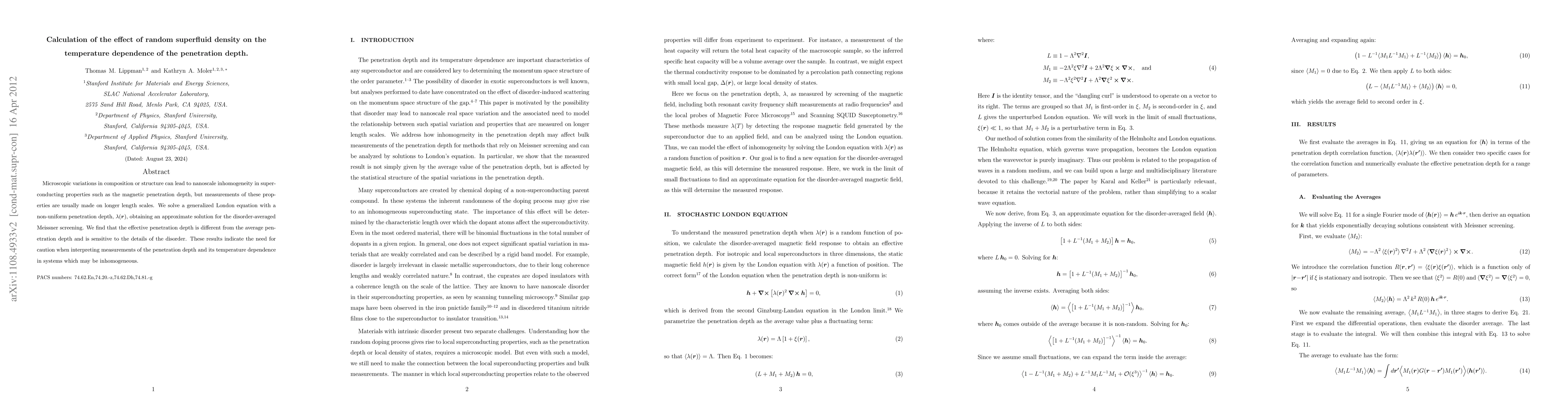 Microscopic variations in composition or structure can lead to nanoscale inhomogeneity in superconducting properties such as the magnetic penetration depth, but measurements of these properties are usually made on longer length scales. We solve a generalized London equation with a non-uniform penetration depth, lambda(r), obtaining an approximate solution for the disorder-averaged Meissner effect. We find that the effective penetration depth is different from the average penetration depth and is sensitive to the details of the disorder. These results indicate the need for caution when interpreting measurements of the penetration depth and its temperature dependence in systems which may be inhomogeneous.