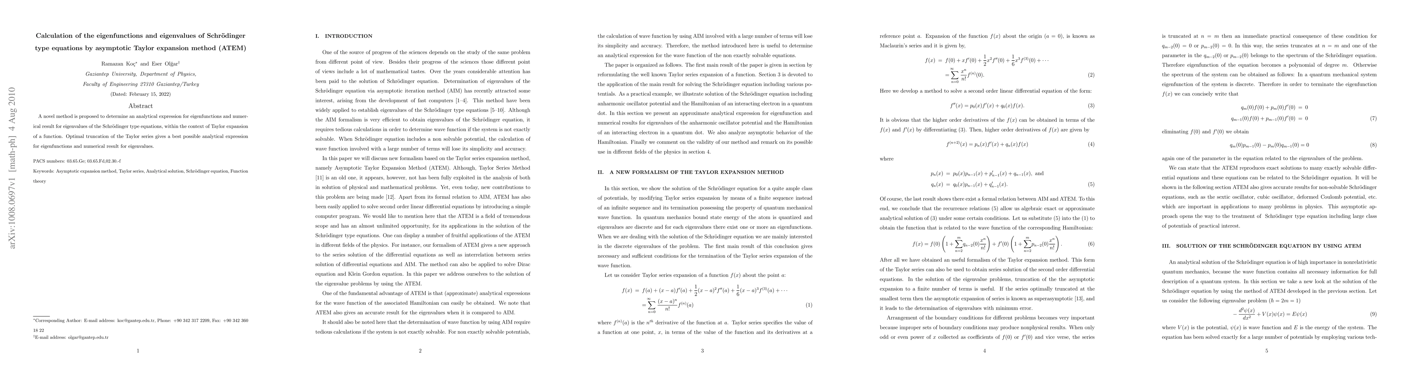 A novel method is proposed to determine an analytical expression for eigenfunctions and numerical result for eigenvalues of the Schr\"odinger type equations, within the context of Taylor expansion of a function. Optimal truncation of the Taylor series gives a best possible analytical expression for eigenfunctions and numerical result for eigenvalues.