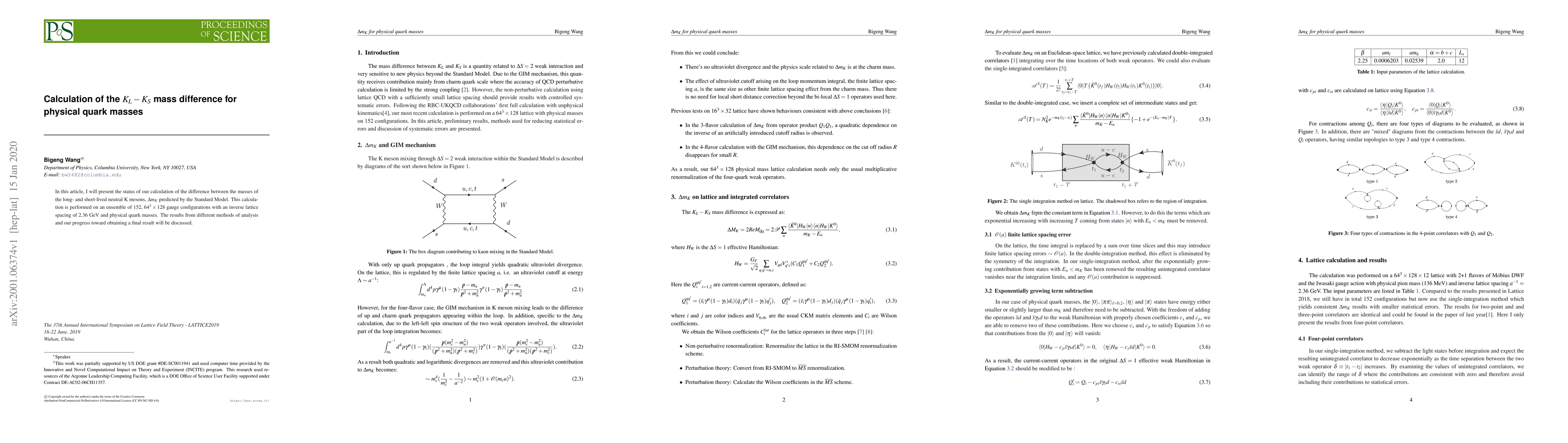 This paper presents a calculation of the mass difference between long- and short-lived K mesons using lattice gauge configurations with physical quark masses, aiming to refine predictions in the Standard Model.