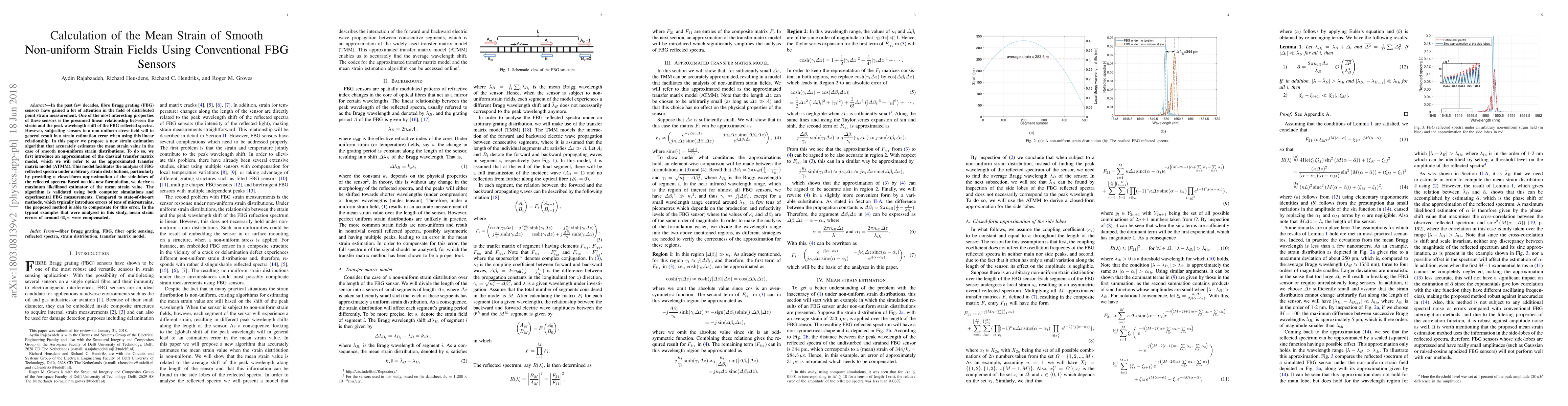 This paper proposes a new algorithm to accurately estimate mean strain in smooth non-uniform strain fields using conventional FBG sensors, introducing an approximated transfer matrix model (ATMM) for improved analysis. The method significantly reduces strain estimation errors compared to existing techniques, achieving compensation of around 60 microstrains.