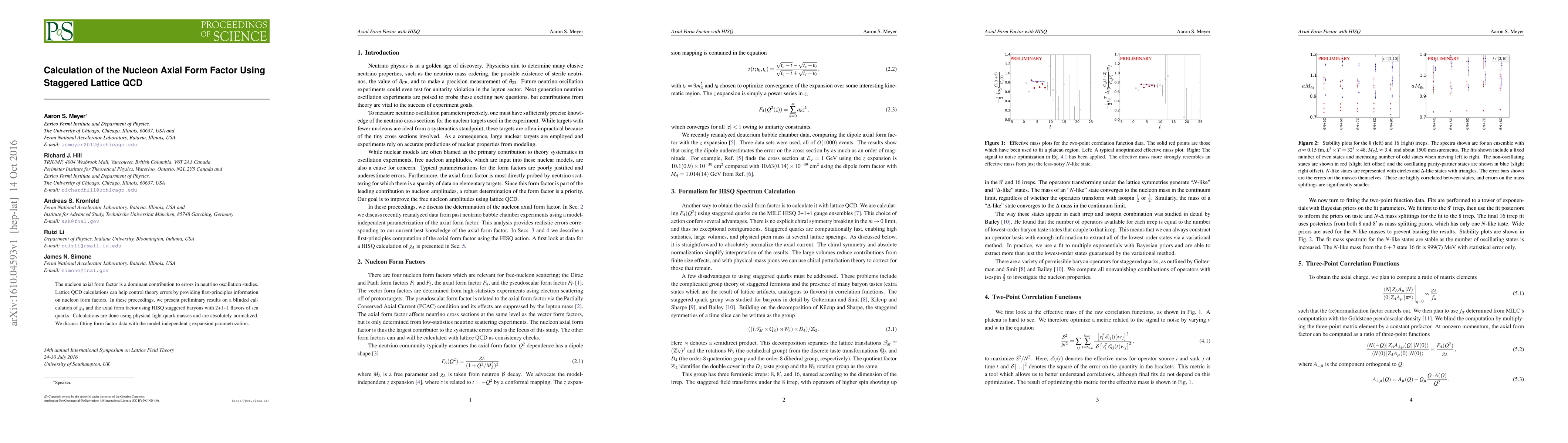 The research employs staggered lattice QCD with HISQ action to calculate the nucleon axial form factor using 2+1+1 flavors of sea quarks at physical light quark masses. The calculations are absolutely normalized and data is fitted with the model-independent z expansion parametrization.