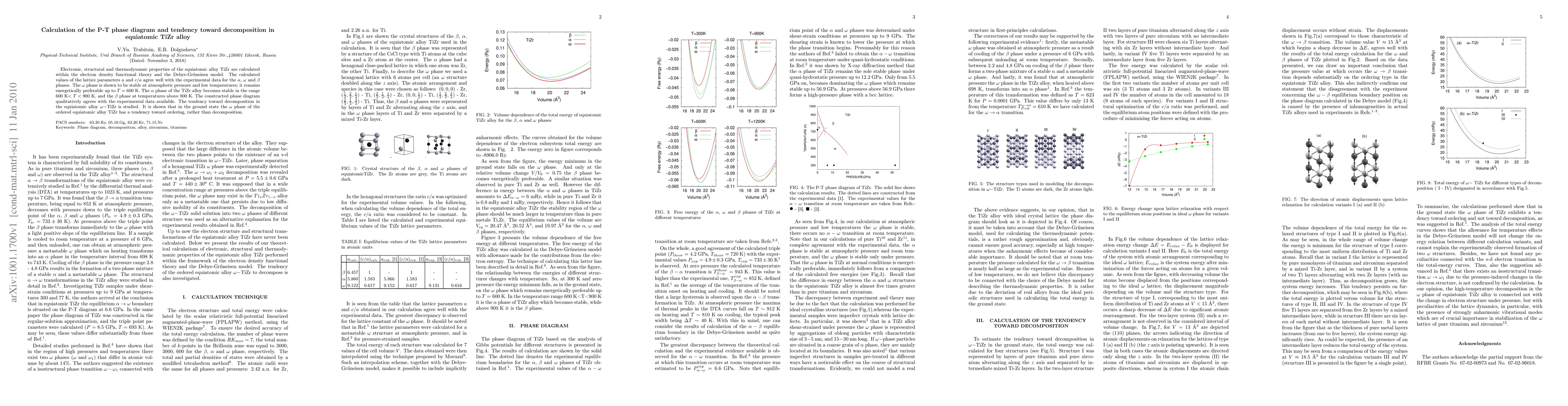 This study calculates the P-T phase diagram for equiatomic TiZr alloy using DFT and the Debye-Gruneisen model, finding that the omega phase is stable at low temperatures up to 600K, while the alpha and beta phases stabilize at higher temperatures. The research also reveals that the omega phase tends to order rather than decompose.