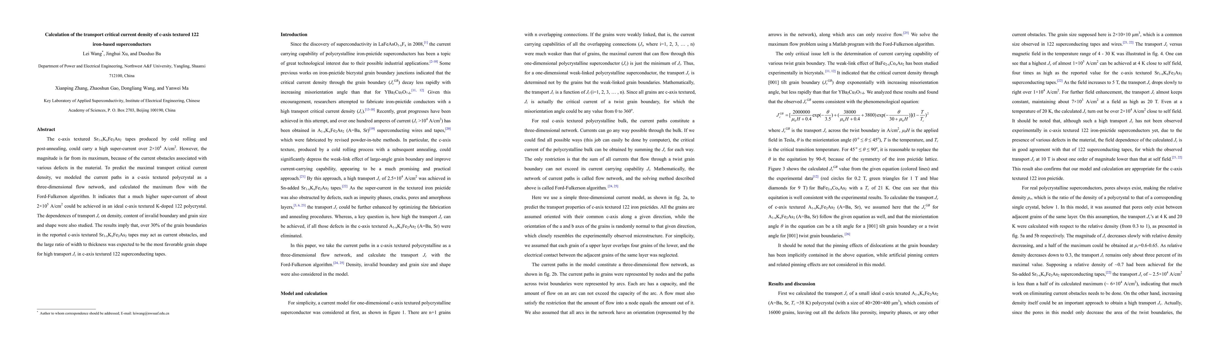 This paper investigates the transport critical current density of c-axis textured Sr1-xKxFe2As2 tapes, finding they can carry over 2*10⁴ A/cm² but could potentially achieve up to 2*10⁵ A/cm² with ideal conditions. The study models the current paths as a three-dimensional flow network and identifies grain boundaries as significant current obstacles.