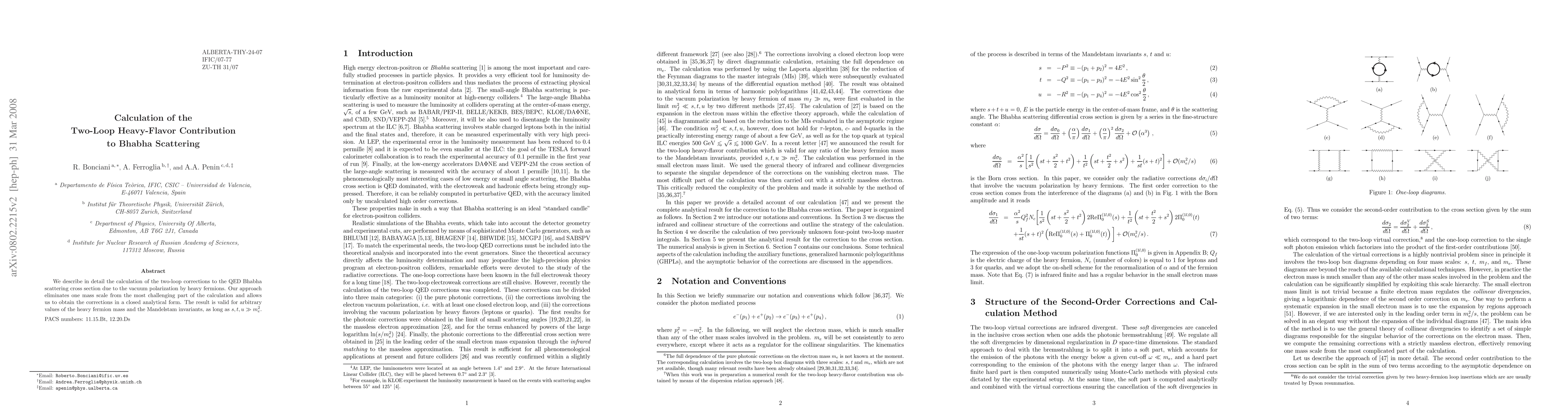 This paper presents a detailed calculation of two-loop corrections to the Bhabha scattering cross section due to heavy-flavor vacuum polarization, achieving a closed analytical form by eliminating one mass scale, valid for large Mandelstam invariants relative to the electron mass.