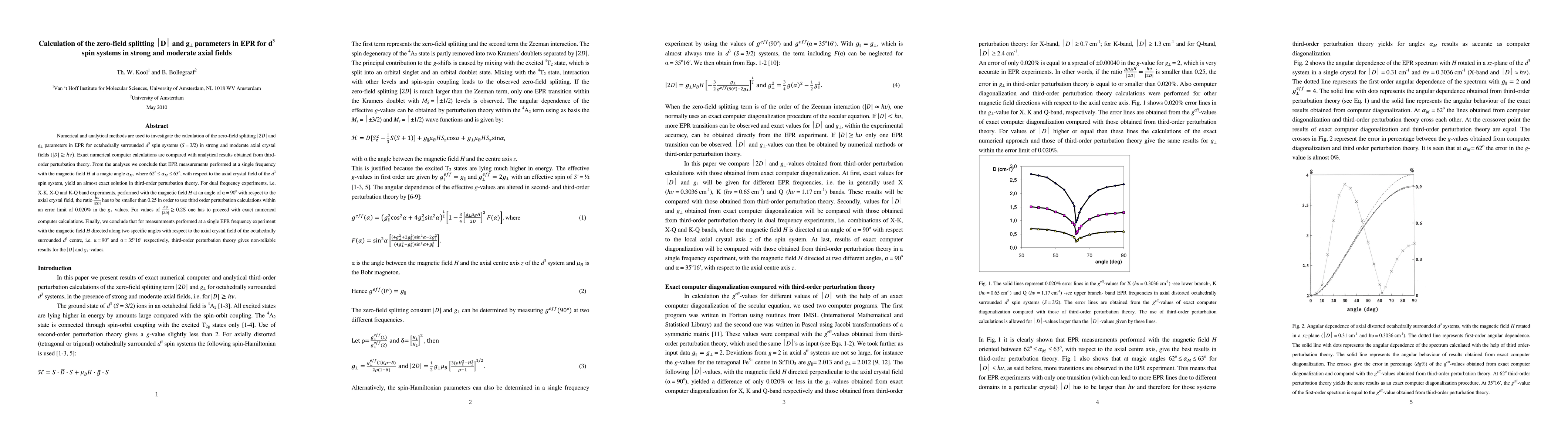 EPR measurements performed at a magic angle for strong axial fields yield almost exact solutions using third-order perturbation theory. For moderate fields, precise calculations require h“psion/|2D| < 0.25.