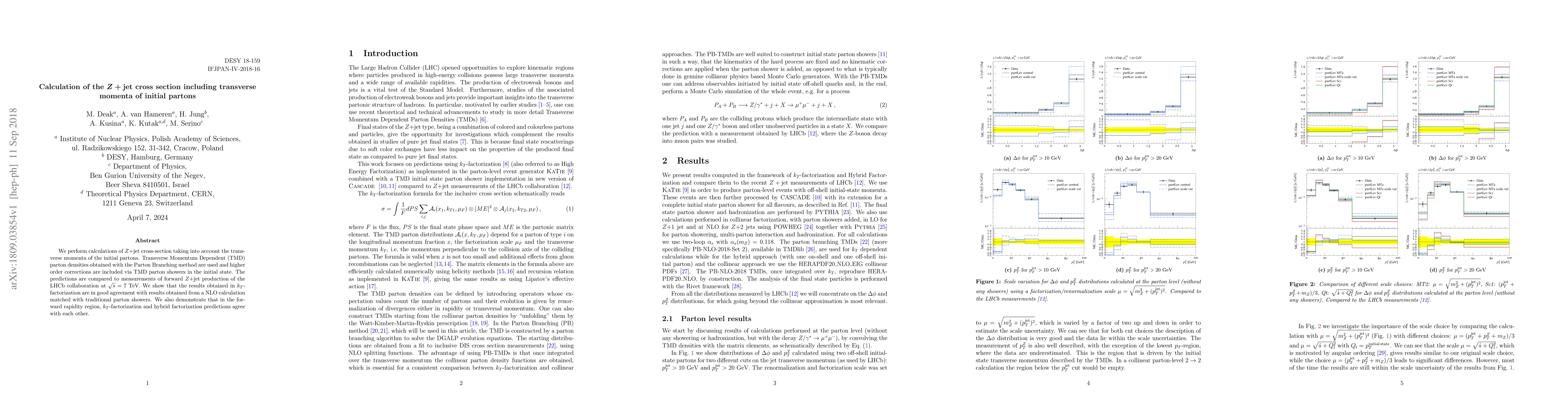 This paper calculates the Z+jet cross-section considering the transverse momenta of initial partons using TMD parton densities and higher-order corrections via TMD parton showers. Results from kT-factorization align well with NLO calculations and show agreement with LHCb measurements and hybrid factorization in the forward rapidity region.