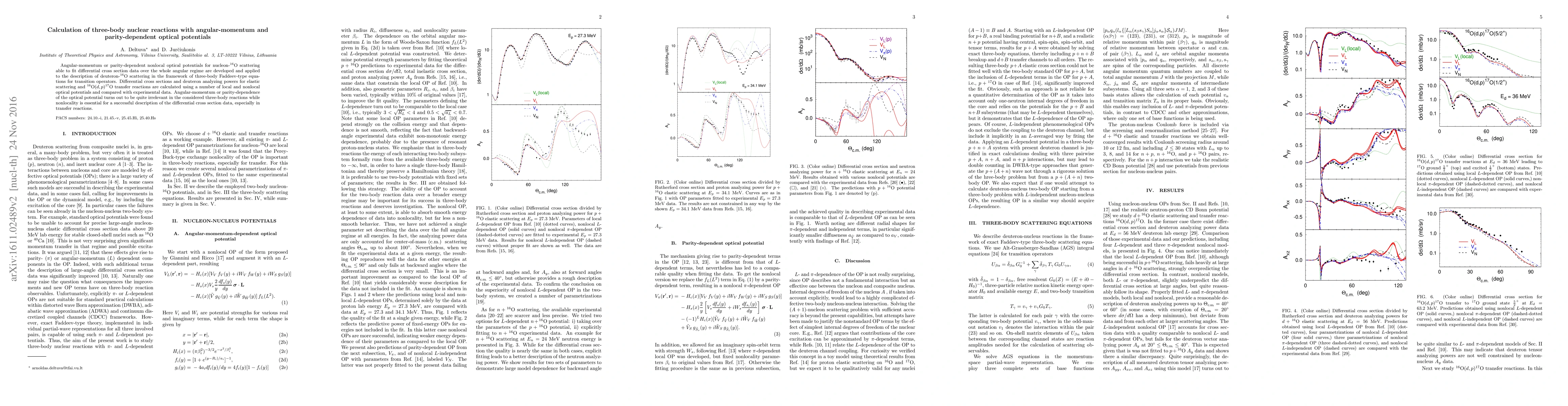 The research employs angular-momentum and parity-dependent optical potentials for nucleon-16O scattering, developed and applied within a three-body Faddeev-type framework to describe deuteron-16O scattering and transfer reactions.