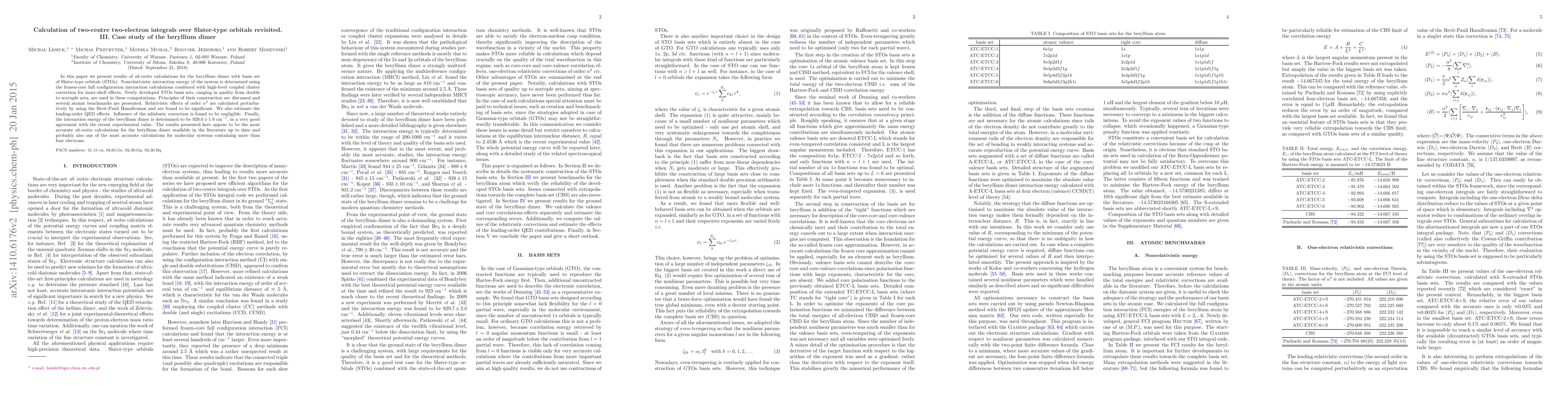 In this paper we present results of ab-initio calculations for the beryllium dimer with basis set of Slater-type orbitals (STOs). Nonrelativistic interaction energy of the system is determined using the frozen-core full configuration interaction calculations combined with high-level coupled cluster correction for inner-shell effects. Newly developed STOs basis sets, ranging in quality from double to sextuple zeta, are used in these computations. Principles of their construction are discussed and several atomic benchmarks are presented. Relativistic effects of order ${\alpha}^2$ are calculated perturbatively by using the Breit-Pauli Hamiltonian and are found to be significant. We also estimate the leading-order QED effects. Influence of the adiabatic correction is found to be negligible. Finally, the interaction energy of the beryllium dimer is determined to be 929.0$\,\pm\,$1.9 $cm^{-1}$, in a very good agreement with the recent experimental value. The results presented here appear to be the most accurate ab-initio calculations for the beryllium dimer available in the literature up to date and probably also one of the most accurate calculations for molecular systems containing more than four electrons.