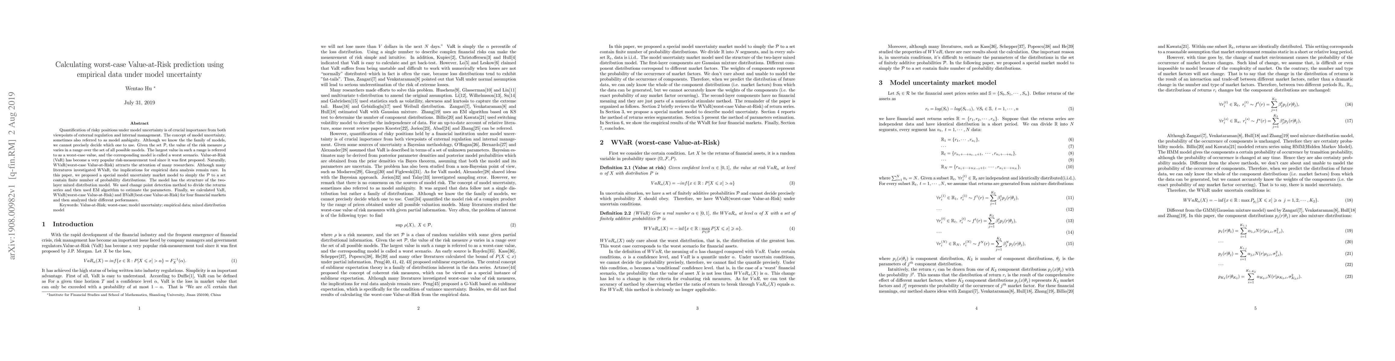 This paper proposes a method to calculate worst-case Value-at-Risk (WVaR) under model uncertainty using empirical data. It introduces a two-layer mixed distribution model to simplify the set of possible models and employs change point detection and EM algorithm for parameter estimation, followed by performance analysis across four financial markets.