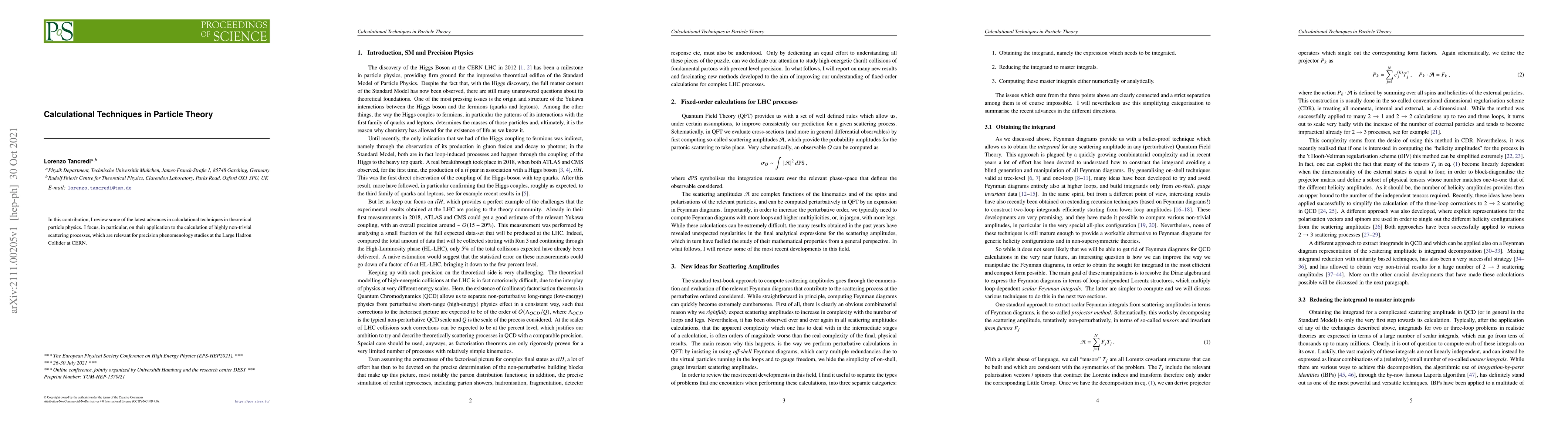 In this contribution, I review some of the latest advances in calculational techniques in theoretical particle physics. I focus, in particular, on their application to the calculation of highly non-trivial scattering processes, which are relevant for precision phenomenology studies at the Large Hadron Collider at CERN.