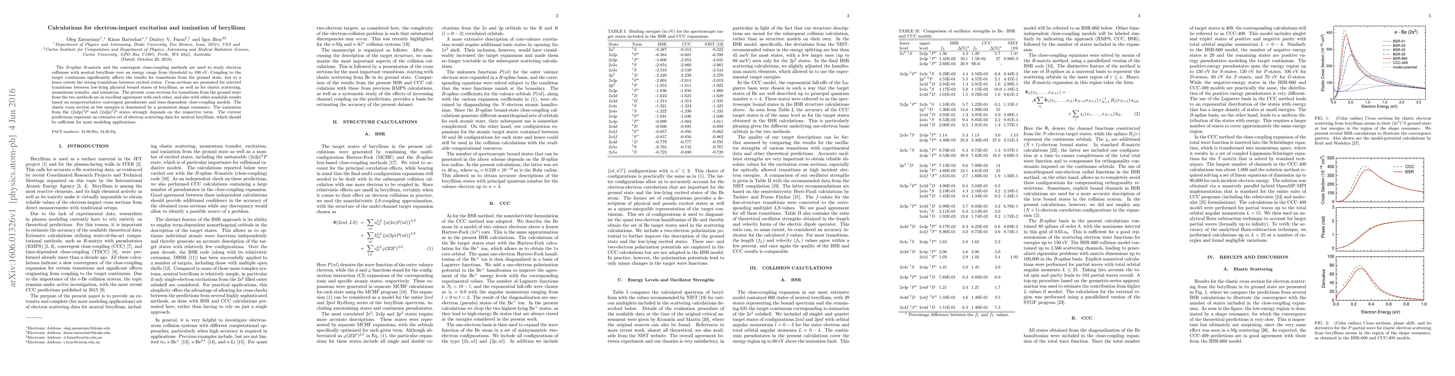 This paper uses B-spline R-matrix and convergent close-coupling methods to study electron collisions with beryllium, finding significant effects on ground state transitions but less on excited states. The calculated cross sections for various transitions and ionization processes show excellent agreement with other models.