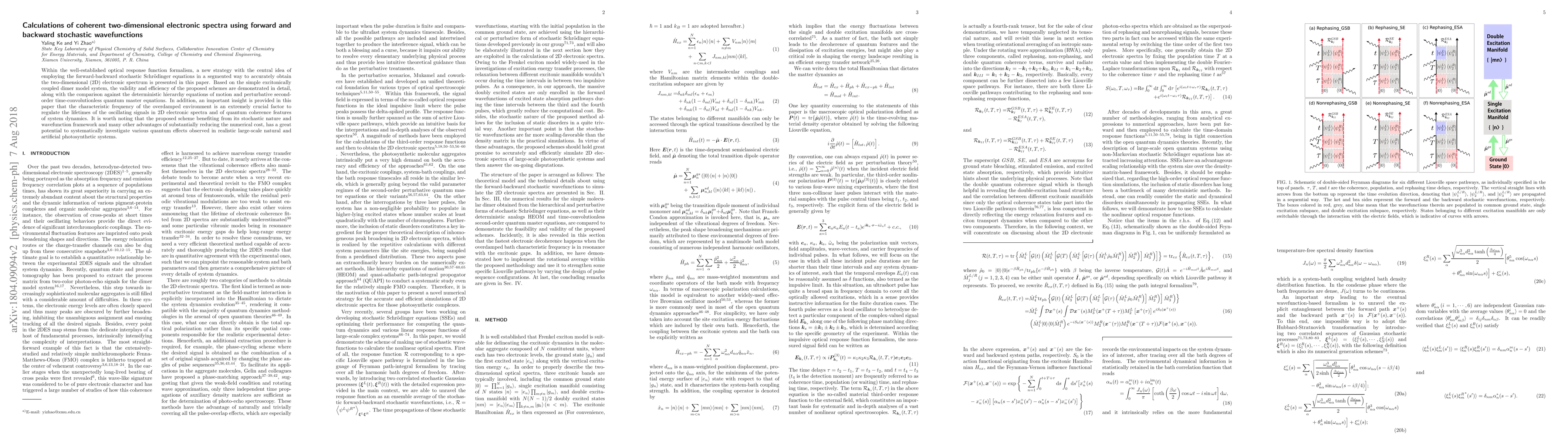 Within the well-established optical response function formalism, a new strategy with the central idea of employing the forward-backward stochastic Schr\"{o}dinger equations in a segmented way to accurately obtain the two-dimensional (2D) electronic spectrum is presented in this paper. Based on the simple excitonically coupled dimer model system, the validity and efficiency of the proposed schemes are demonstrated in detail, along with the comparison against the deterministic hierarchy equations of motion and perturbative second order time-convolutionless quantum master equations. In addition, an important insight is provided in this paper that the characteristic frequency of the overdamped environment is an extremely crucial factor to regulate the lifetimes of the oscillating signals in 2D electronic spectra and of quantum coherence features of system dynamics. It is worth noting that the proposed scheme benefiting from its stochastic nature and wavefunction framework and many other advantages of substantially reducing the numerical cost, has a great potential to systematically investigate various quantum effects observed in realistic large-scale natural and artificial photosynthetic systems.