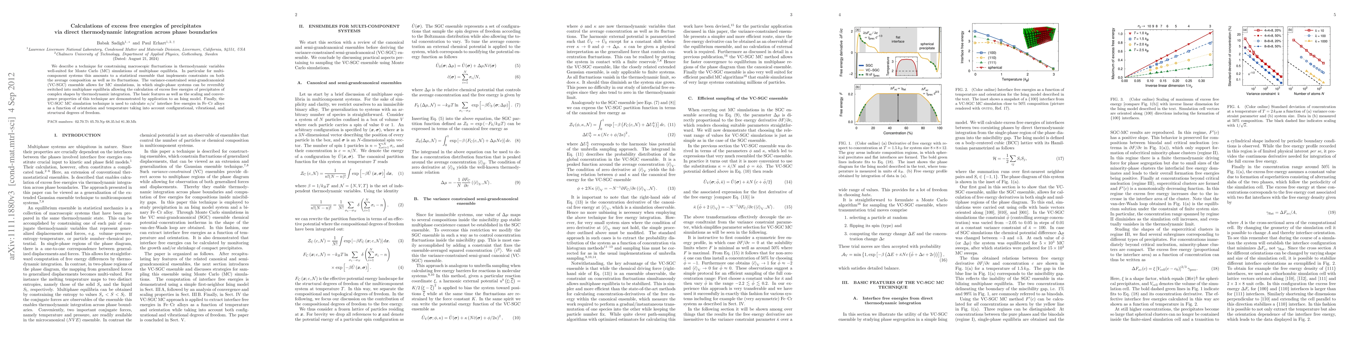 This paper introduces a variance-constrained semi-grandcanonical ensemble for Monte Carlo simulations to calculate excess free energies of precipitates in multiphase systems. The method is demonstrated on an Ising model and applied to Fe-Cr alloy interfaces to determine interface free energies considering various degrees of freedom.