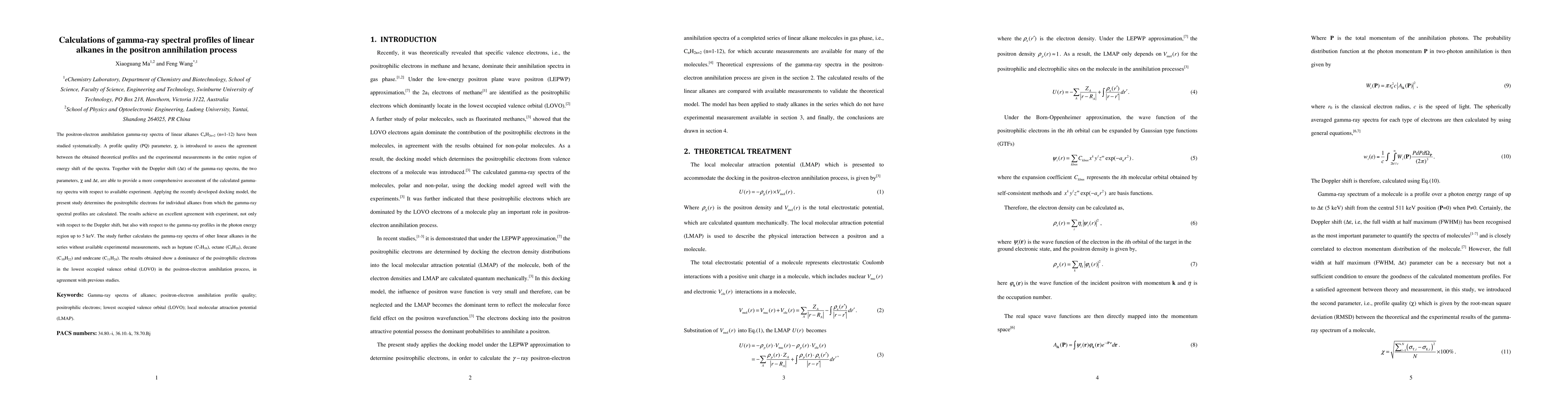 This paper systematically calculates gamma-ray spectral profiles of linear alkanes using the positron annihilation process, introducing a profile quality parameter to assess theoretical versus experimental agreement. The study achieves excellent agreement with experiments and extends calculations to alkanes without prior measurements, highlighting the dominance of positrophilic electrons in the lowest occupied valence orbital.