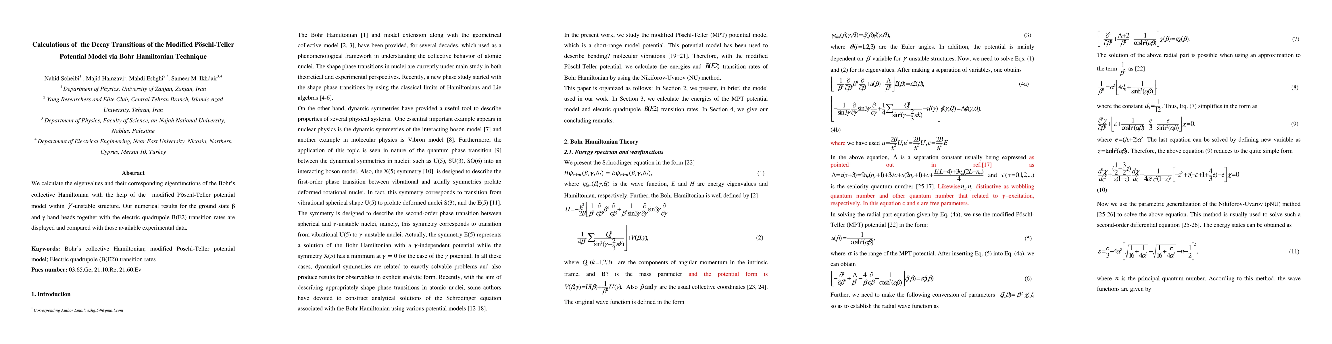 This paper calculates eigenvalues and eigenfunctions using Bohr's collective Hamiltonian for the modified Poschl-Teller potential model, focusing on unstable structures. It presents numerical results for ground state transitions and compares electric quadrupole B(E2) transition rates with experimental data.