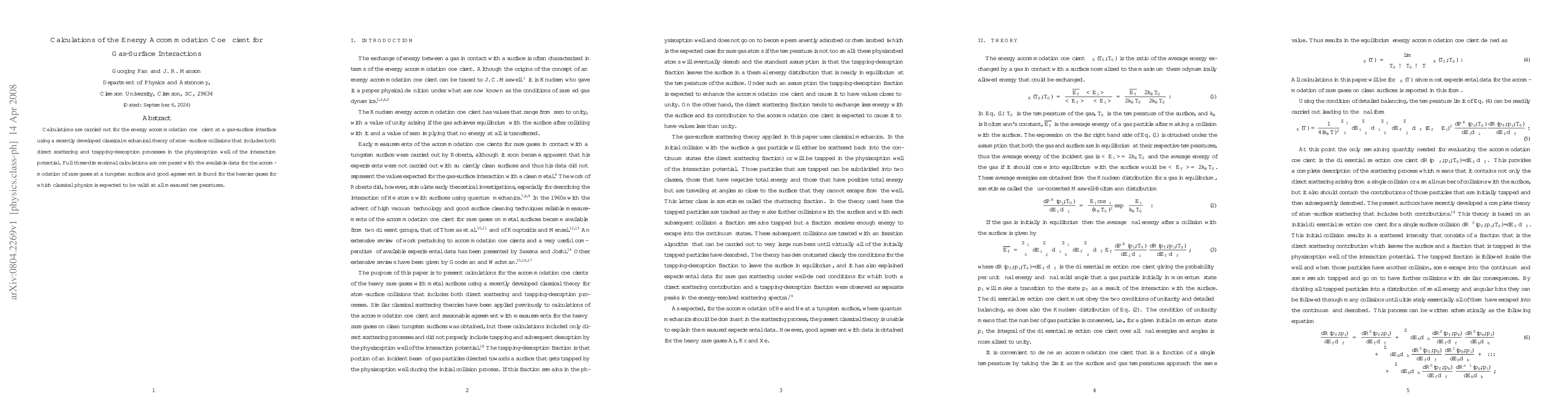 This paper calculates the energy accommodation coefficient for gas-surface interactions using a new classical mechanical theory, showing good agreement with experimental data for rare gases on a tungsten surface, particularly for heavier gases where classical physics applies.