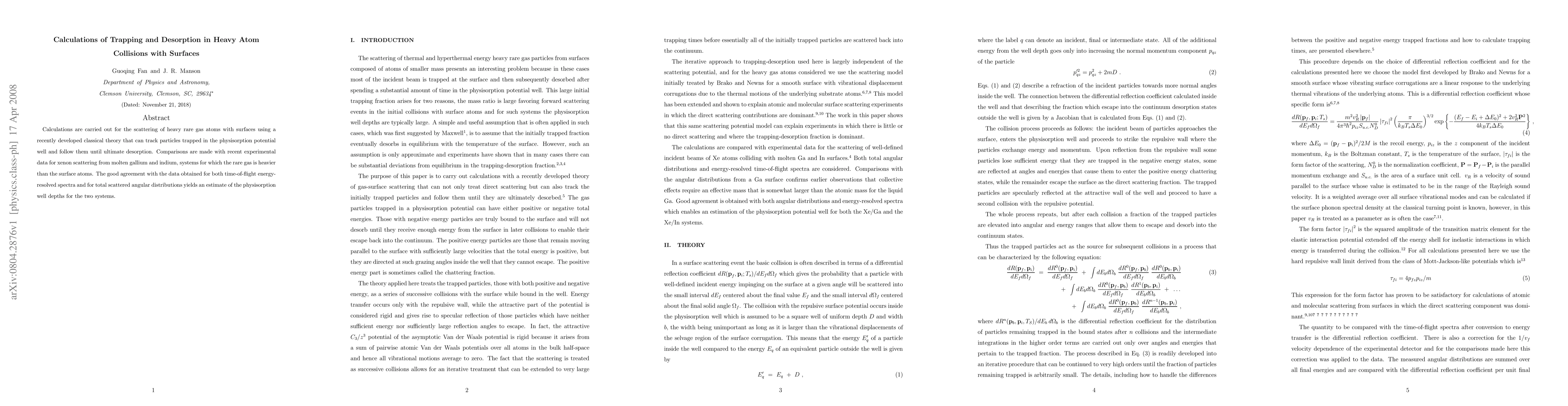 Researchers developed a new classical theory to study heavy atom collisions with surfaces, which accurately predicts trapping and desorption in physisorption potential wells for systems like xenon scattering from molten gallium and indium.
