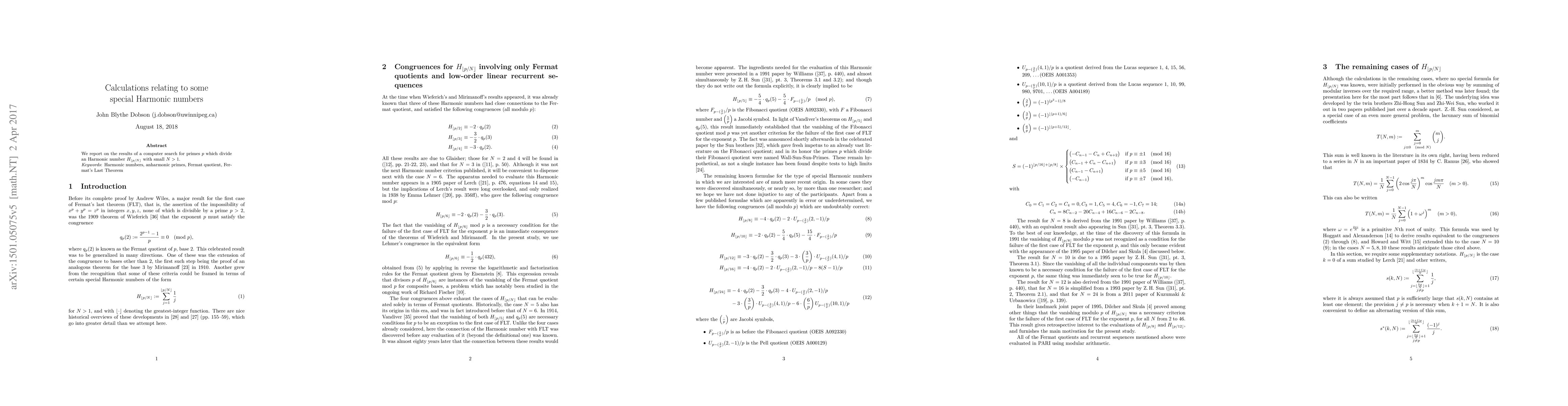 We report on the results of a computer search for primes $p$ which divide an Harmonic number $H_{\lfloor p/N \rfloor}$ with small $N > 1$.