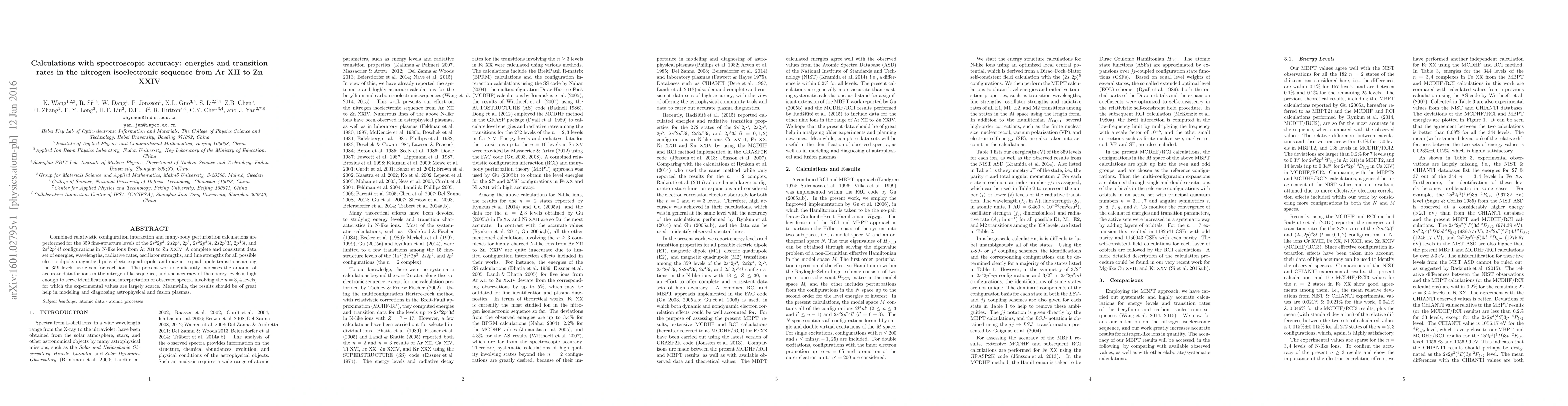 Combined relativistic configuration interaction and many-body perturbation calculations are performed for the 359 fine-structure levels of the $2s^2 2p^3$, $2s 2p^4$, $2p^5$, $2s^2 2p^2 3l$, $2s 2p^3 3l$, $2p^4 3l$, and $2s^2 2p^2 4l$ configurations in N-like ions from Ar XII to Zn XXIV. A complete and consistent data set of energies, wavelengths, radiative rates, oscillator strengths, and line strengths for all possible electric dipole, magnetic dipole, electric quadrupole, and magnetic quadrupole transitions among the 359 levels are given for each ion. The present work significantly increases the amount of accurate data for ions in the nitrogen-like sequence, and the accuracy of the energy levels is high enough to serve identification and interpretation of observed spectra involving the $n=3,4$ levels, for which the experimental values are largely scarce. Meanwhile, the results should be of great help in modeling and diagnosing astrophysical and fusion plasmas.
