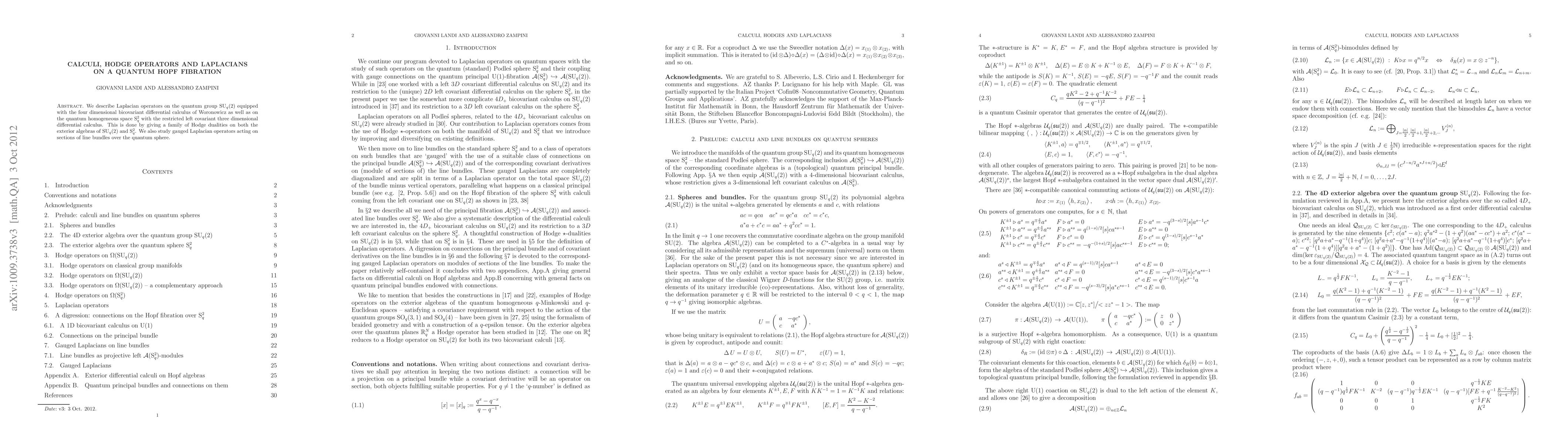 This paper introduces Hodge dualities for Laplacian operators on quantum group SUq(2) and its homogeneous space S2q, enabling the study of gauged Laplacian operators on line bundles over the quantum sphere.