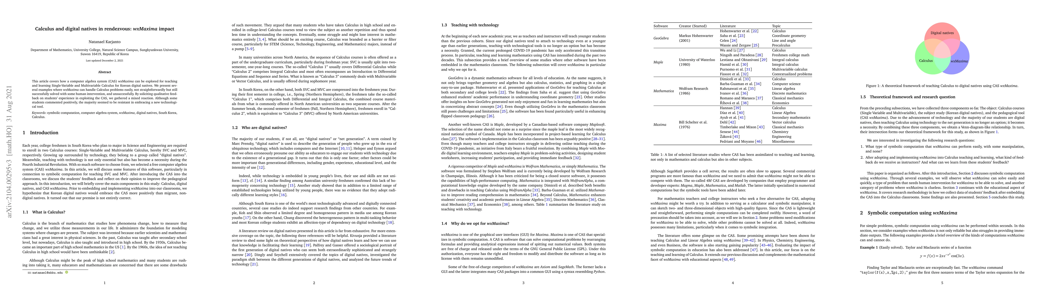 This article covers how a computer algebra system (CAS) wxMaxima can be explored for teaching and learning Single-Variable and Multivariable Calculus for Korean digital natives. We present several examples where \emph{wxMaxima} can handle Calculus problems easily, not straightforwardly but still successfully solved with some human intervention, and unsuccessfully. By soliciting qualitative feedback on students' experience in exploiting the CAS, we gathered a mixed reaction. Although some students commented positively, the majority seemed to be resistant in embracing a new technological tool.