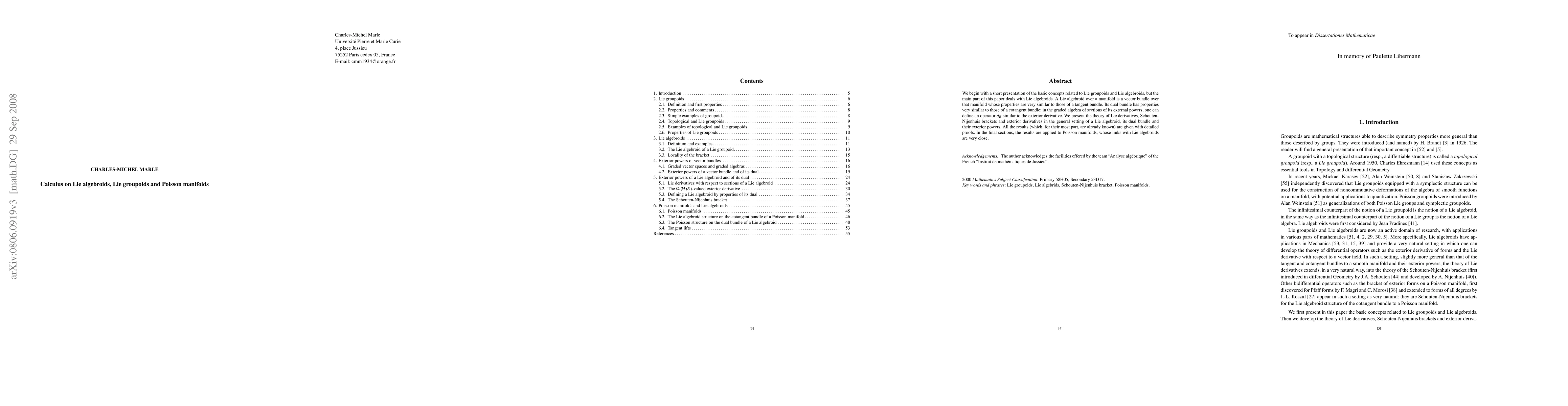 This paper provides a comprehensive exploration of calculus on Lie algebroids, Lie groupoids, and Poisson manifolds. It develops the theory of Lie derivatives, Schouten-Nijenhuis brackets, and exterior derivatives within the framework of Lie algebroids, with detailed proofs, and applies these results to the study of Poisson manifolds.