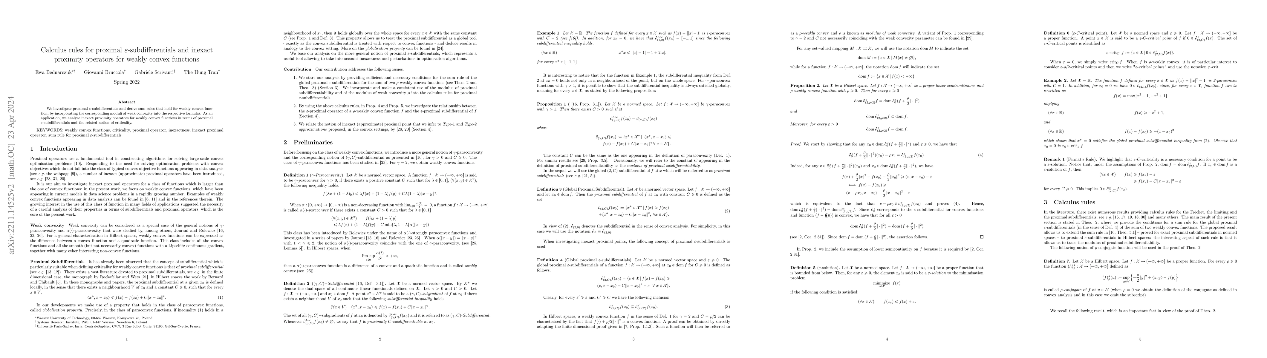 Summary: This paper derives sum rules for proximal ε-subdifferentials, incorporating moduli of weak convexity to study inexact proximity operators for weakly convex functions. These rules facilitate the analysis of inexact proximity operators in the context of weak convexity.