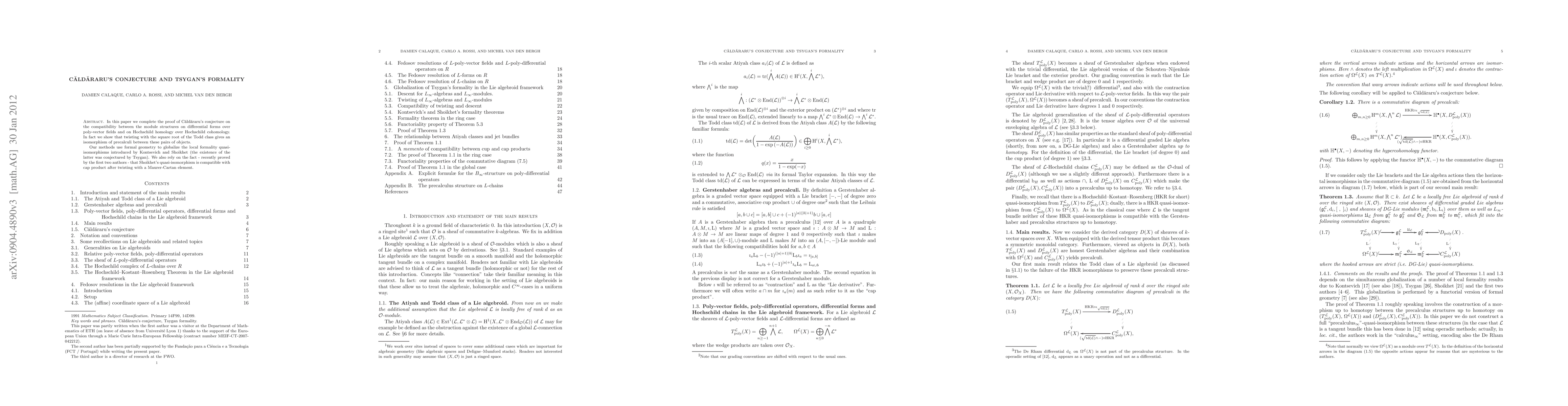 In this paper we complete the proof of Caldararu's conjecture on the compatibility between the module structures on differential forms over poly-vector fields and on Hochschild homology over Hochschild cohomology. In fact we show that twisting with the square root of the Todd class gives an isomorphism of precalculi between these pairs of objects. Our methods use formal geometry to globalize the local formality quasi-isomorphisms introduced by Kontsevich and Shoikhet (the existence of the latter was conjectured by Tsygan). We also rely on the fact - recently proved by the first two authors - that Shoikhet's quasi-isomorphism is compatible with cap product after twisting with a Maurer-Cartan element.