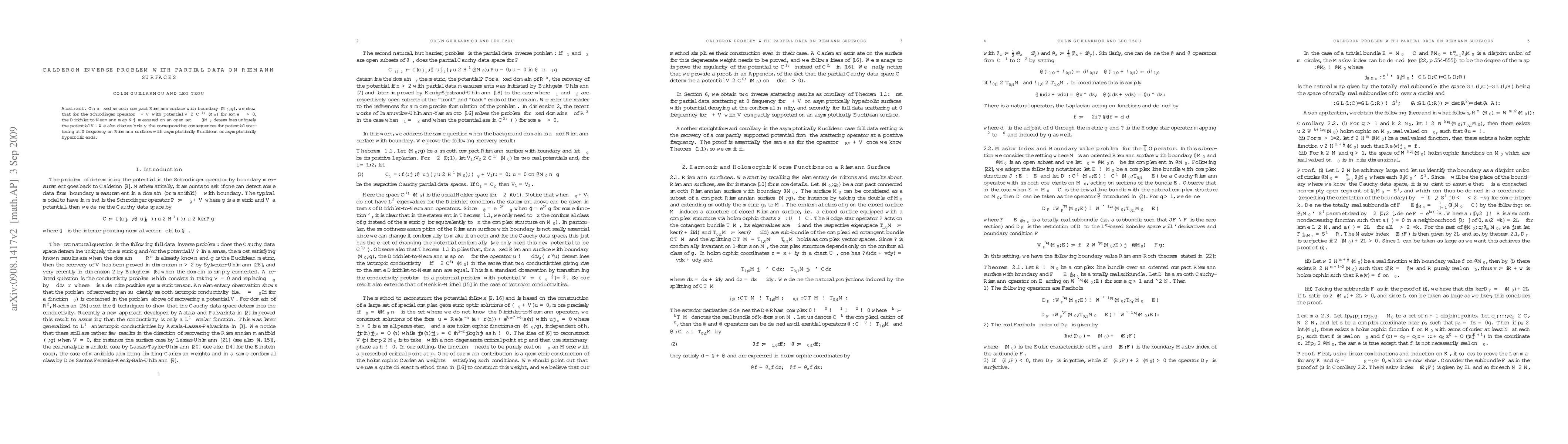 This paper demonstrates that on a compact Riemann surface with boundary, the potential $V$ of a Schrödinger operator can be uniquely determined from the Dirichlet-to-Neumann map measured on a subset of the boundary. It also touches on implications for potential scattering at zero frequency on Riemann surfaces with specific end types.