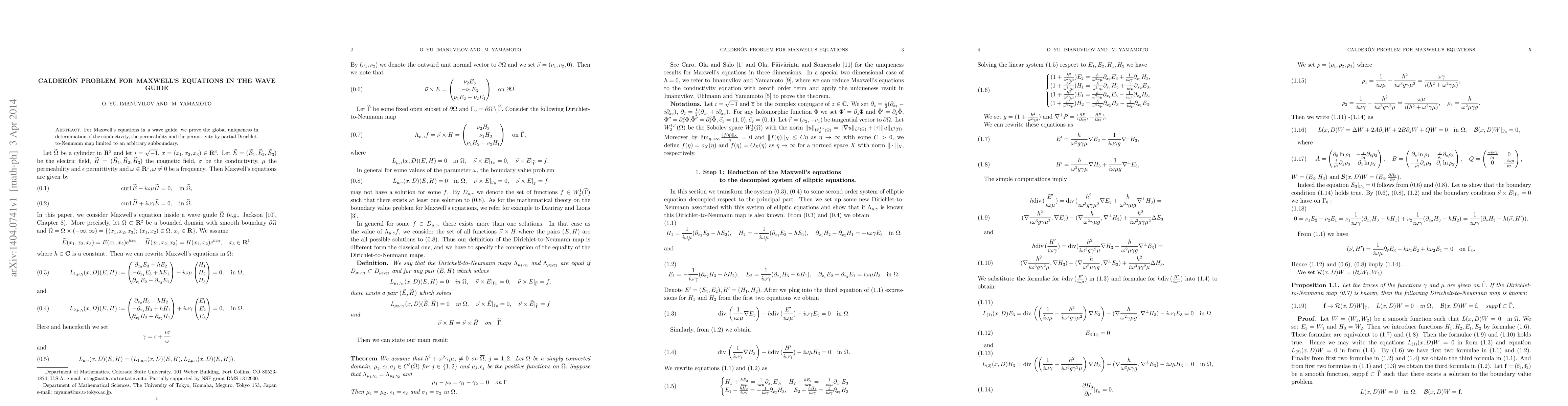 For Maxwell's equations in a wave guide, we prove the global uniqueness in determination of the conductivity, the permeability and the permittivity by partial Dirichlet-to-Neumann map limited to an arbitrary subboundary.