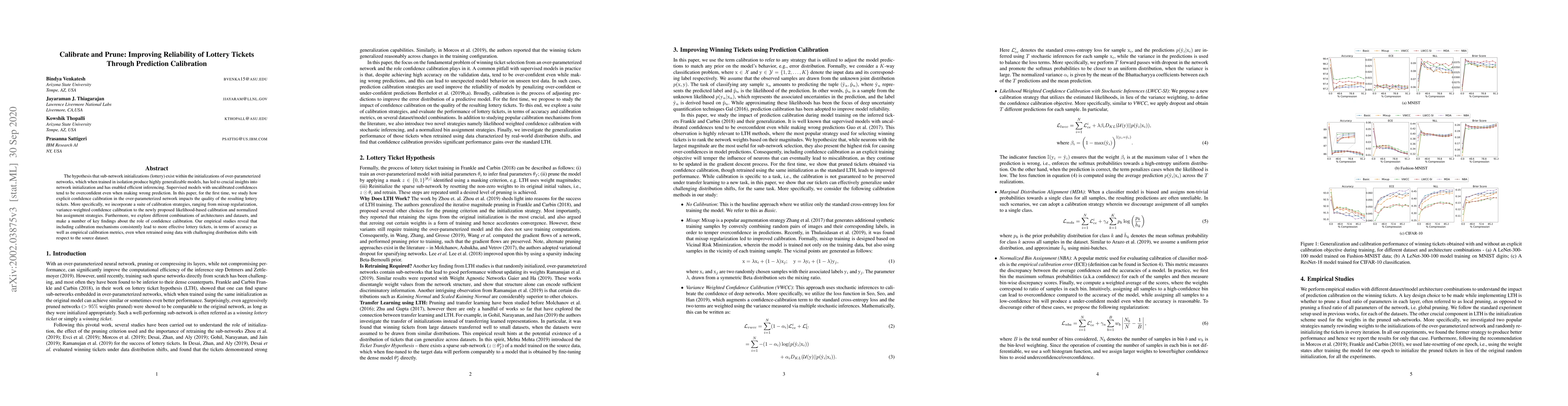 This paper investigates how confidence calibration improves lottery tickets in over-parameterized networks, leading to more accurate results with better performance on datasets with distribution shifts.