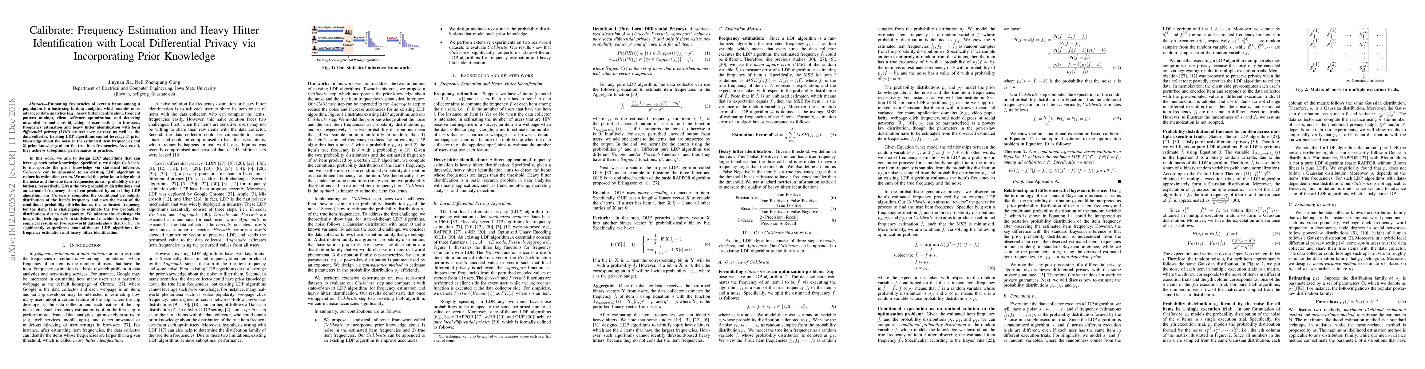 This paper proposes ${Calibrate}$, an algorithm to enhance local differential privacy (LDP) for frequency estimation and heavy hitter identification by incorporating prior knowledge about noise and true item frequencies. It significantly outperforms existing LDP algorithms by leveraging statistical inference and machine learning techniques to address data sparsity challenges.